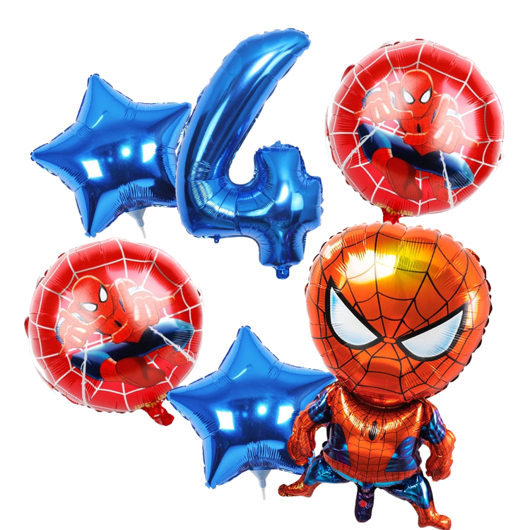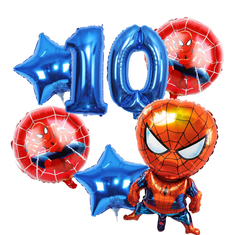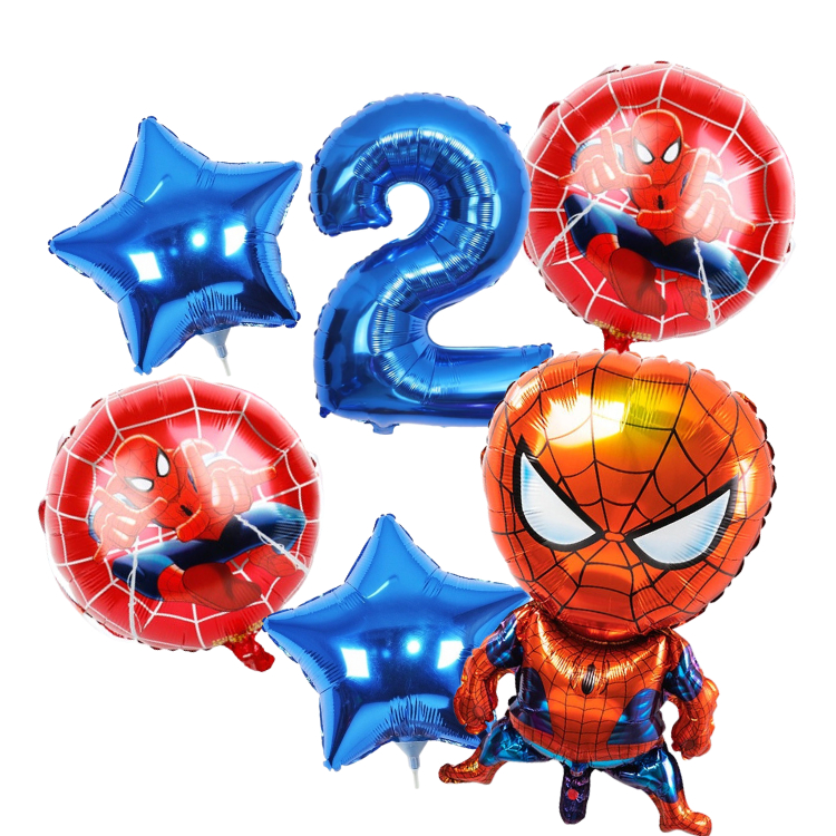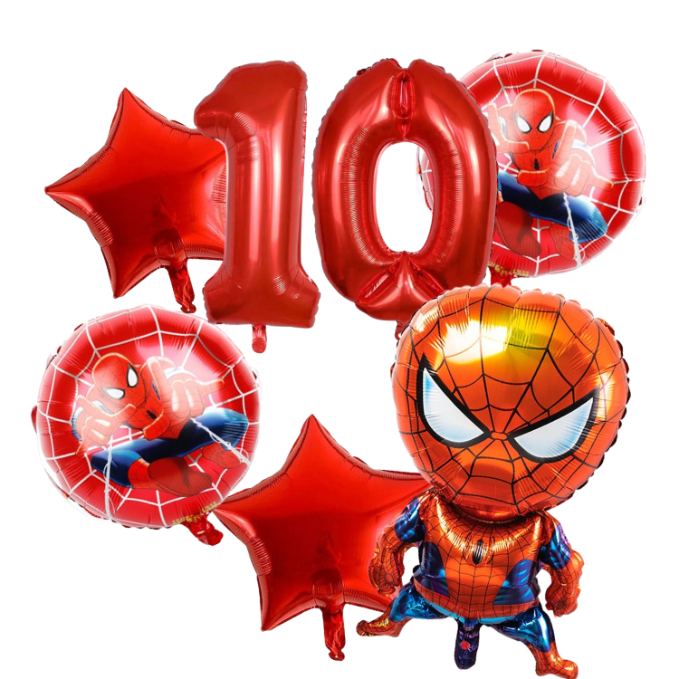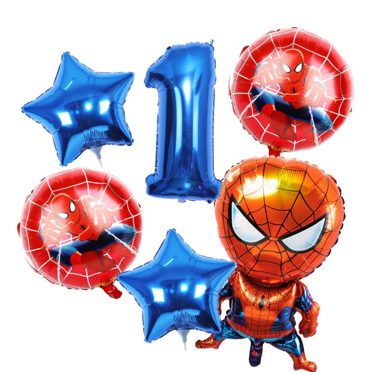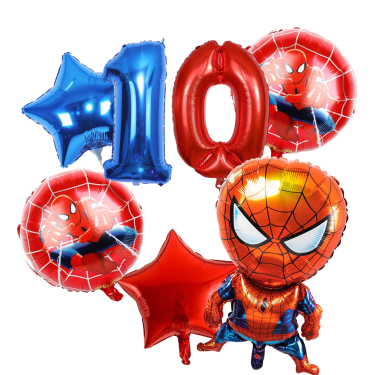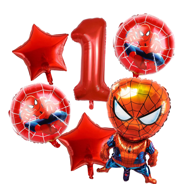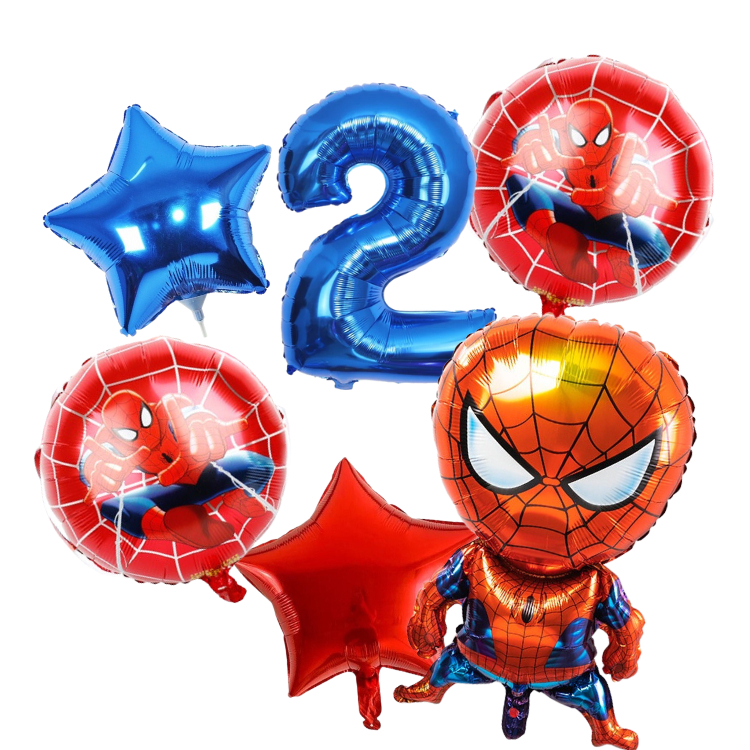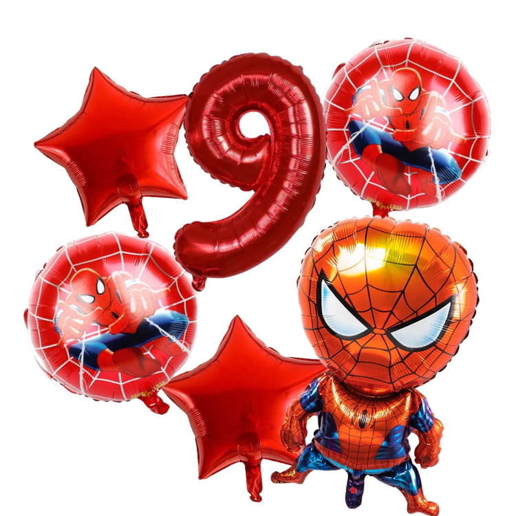 Kit 6 Balão Homem Aranha Heroi + Balão Redondo+ Estrela + Numero