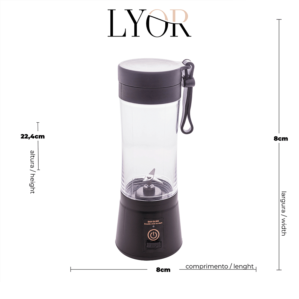 Mixer Portátil Lyor Lâmina em Inox 8x22,5cm Preto
