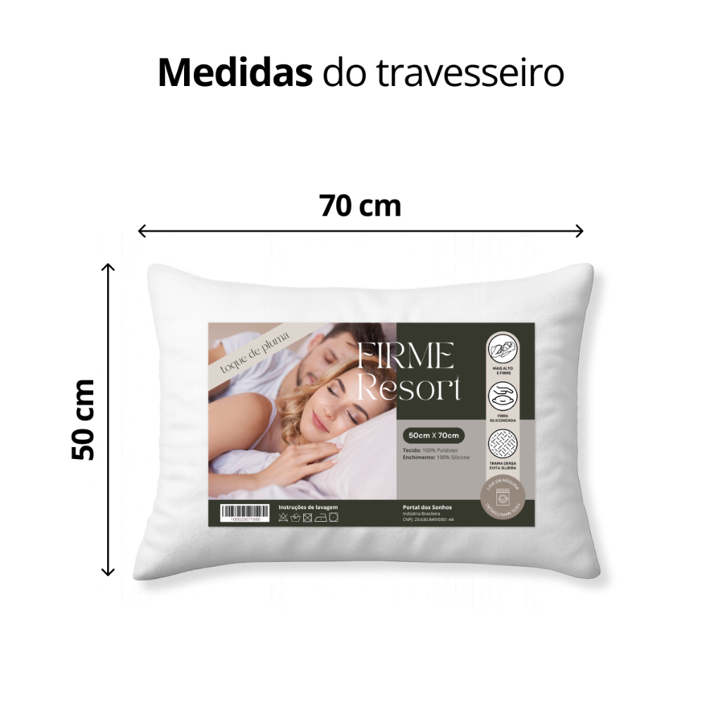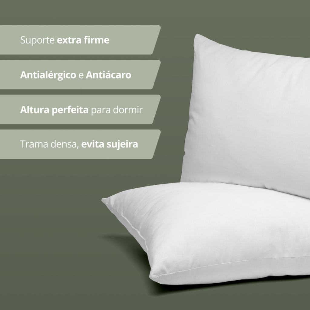 Kit 2 UNIDADES Travesseiros 50x70cm suporte firme alto fibra antialérgico linha premium