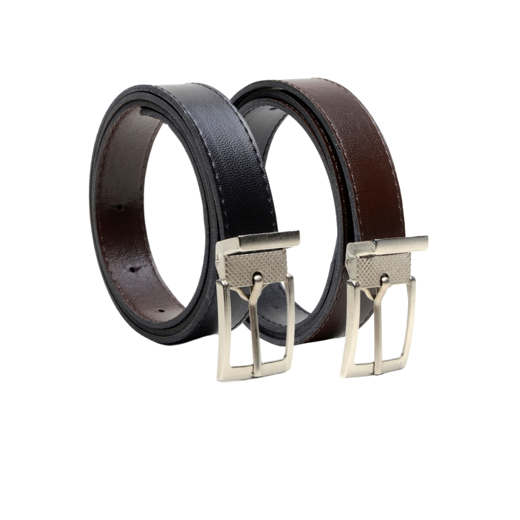 Kit 2 Cinto Infantil Social Dupla Face Preto/Marrom Fivela Removível Alta Qualidade