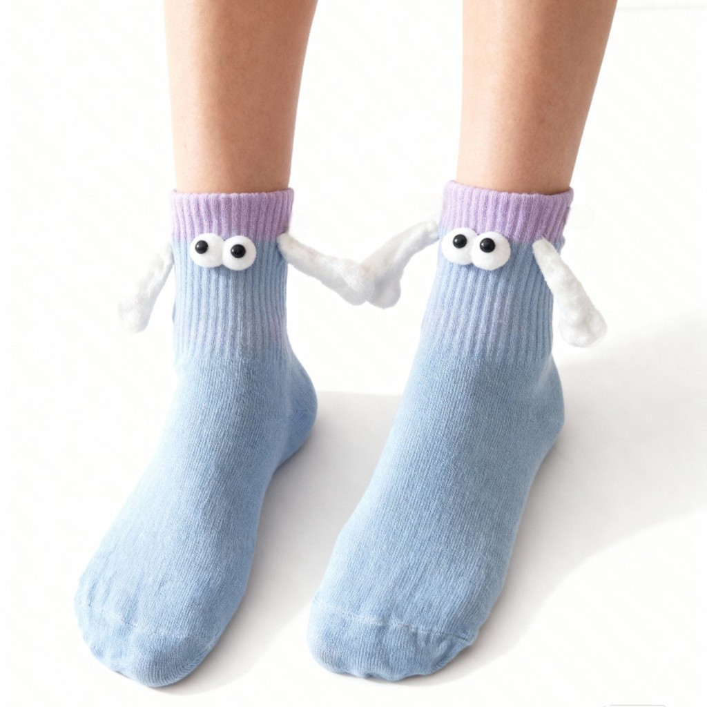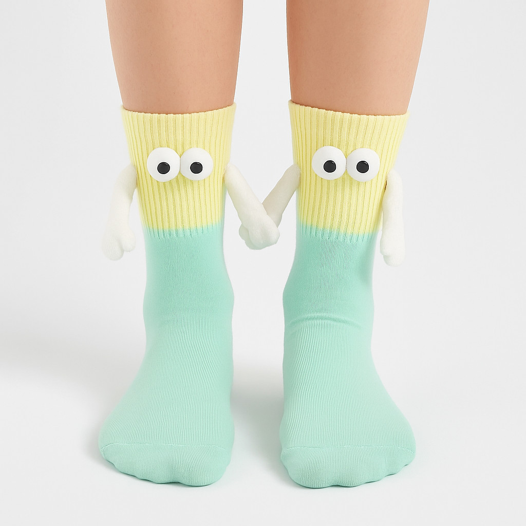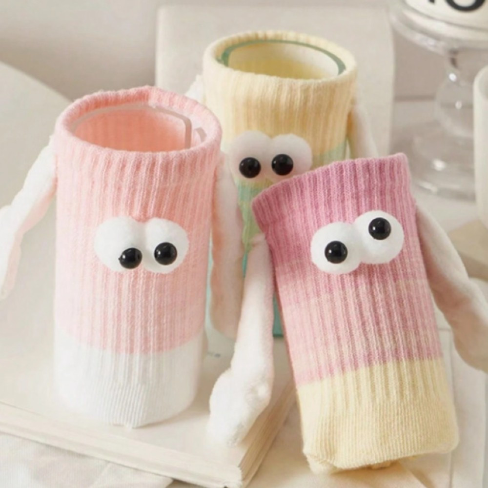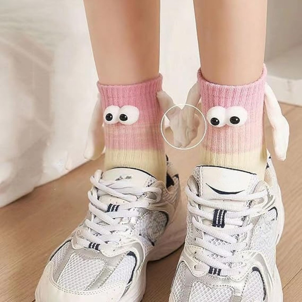 Kit 3 Meias Divertidas Femininas 3D Com Ímã Nas Mãos E Olhinhos