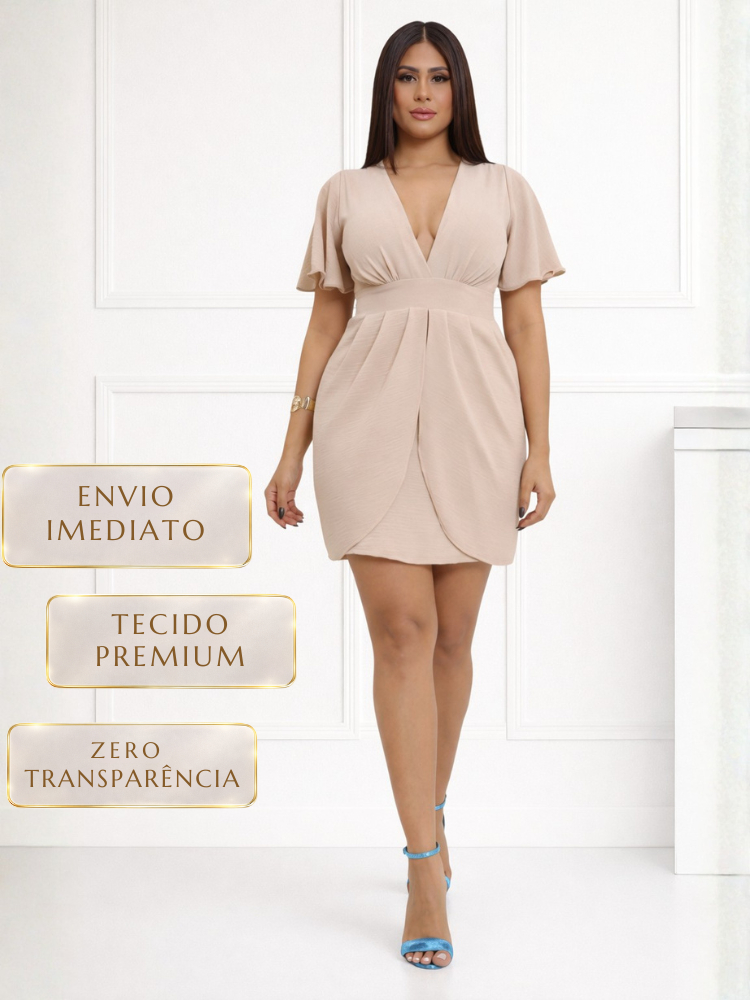 Vestido Tubinho Curto Manga Mariposa Não Amassa Duna Premium Fresco Com Forro Verão Envio Imediato