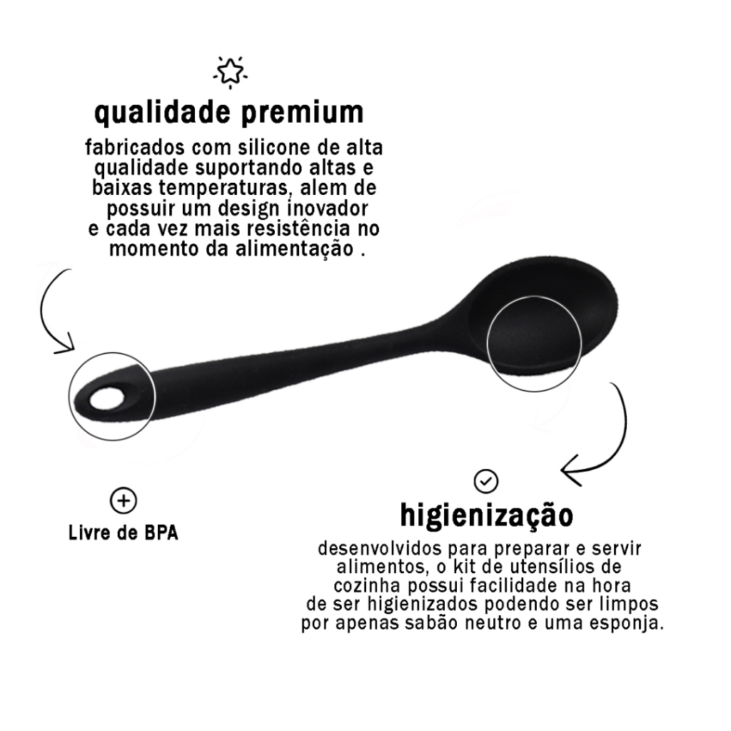 Kits Espátula mais Colher de Silicone Antiaderente Utilidade Domestica