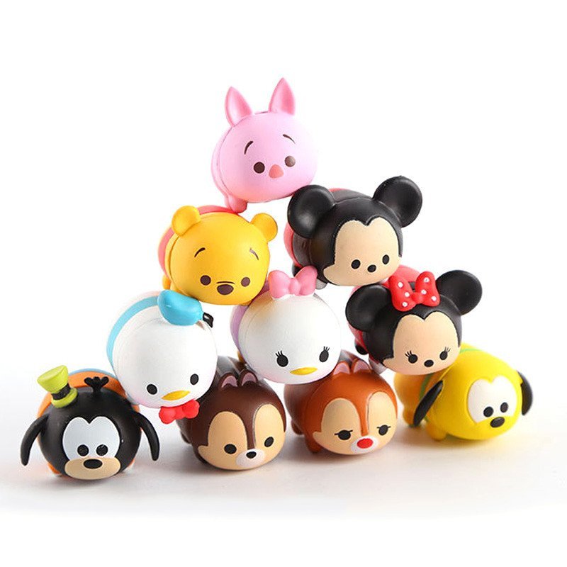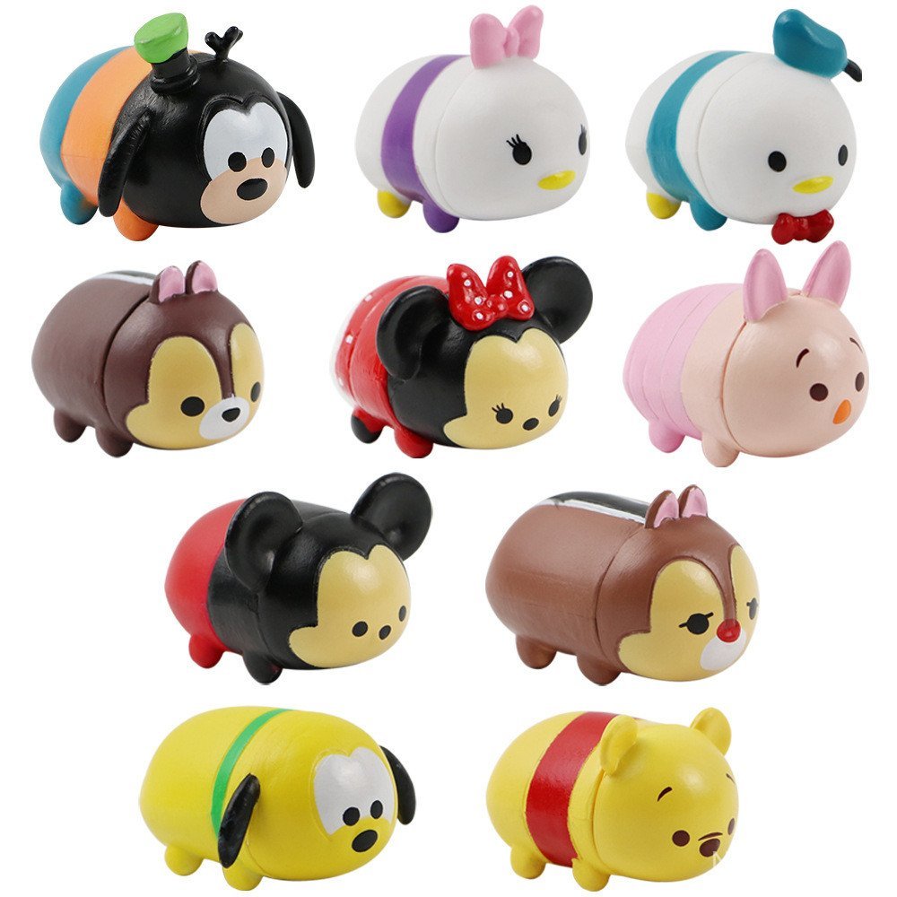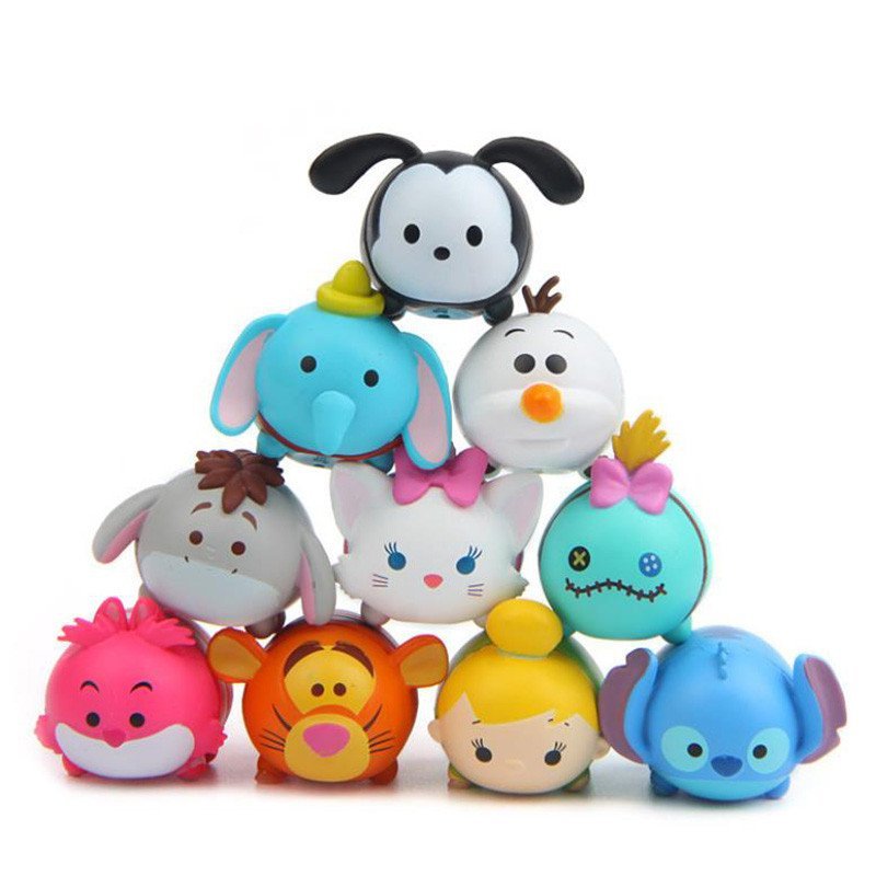 10 Pçs Tsum Stitch Figuras Em Miniatura Mickey Minnie Mouse Winnie the Pooh Olaf Disney Dumbo Bonecas Brinquedos Kit