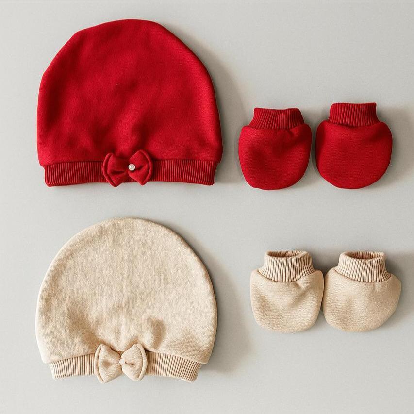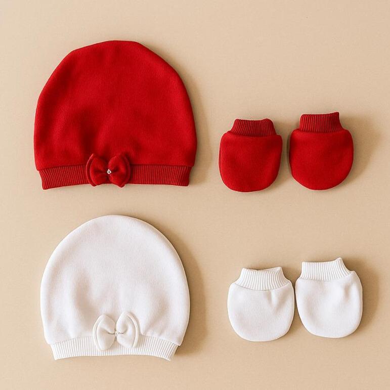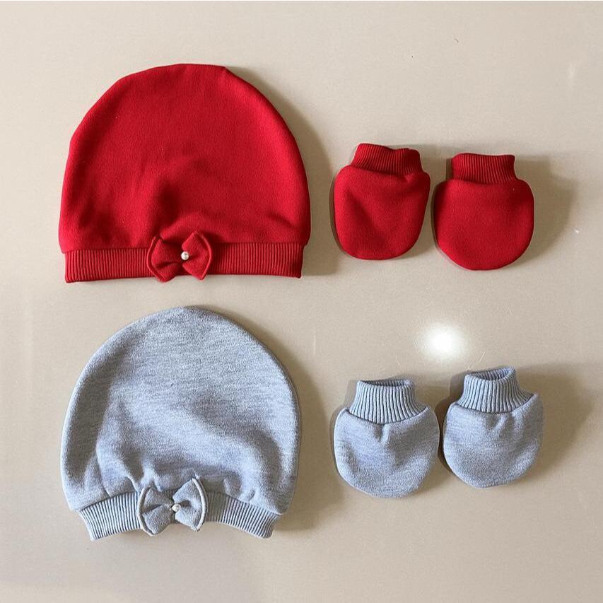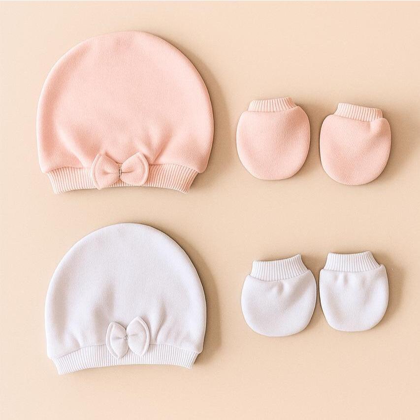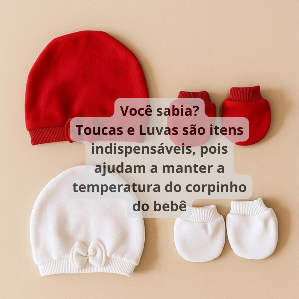 Kit 2 Toucas e 2 Luvas Bebê Menina RN Recém-Nascido Algodão Antialérgico Enxoval Maternidade Gestante Várias Cores