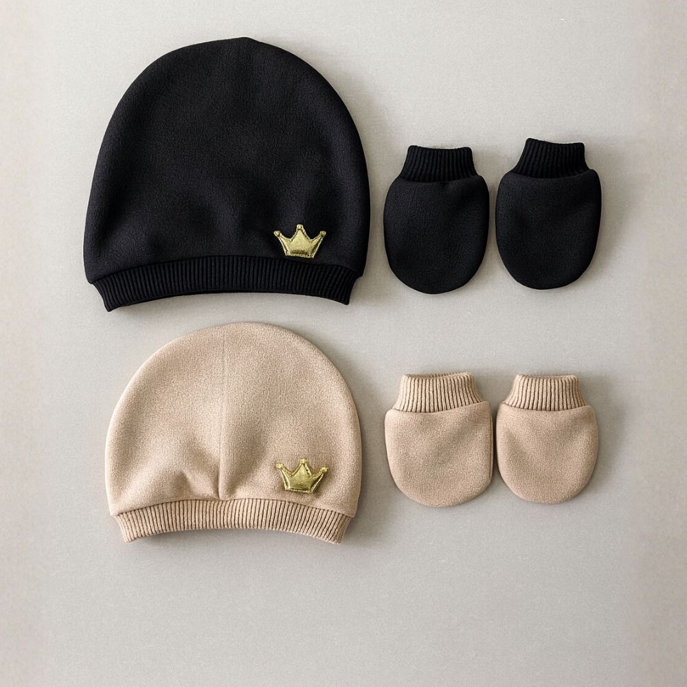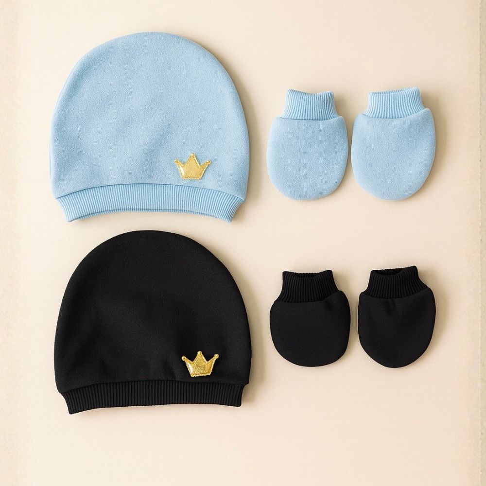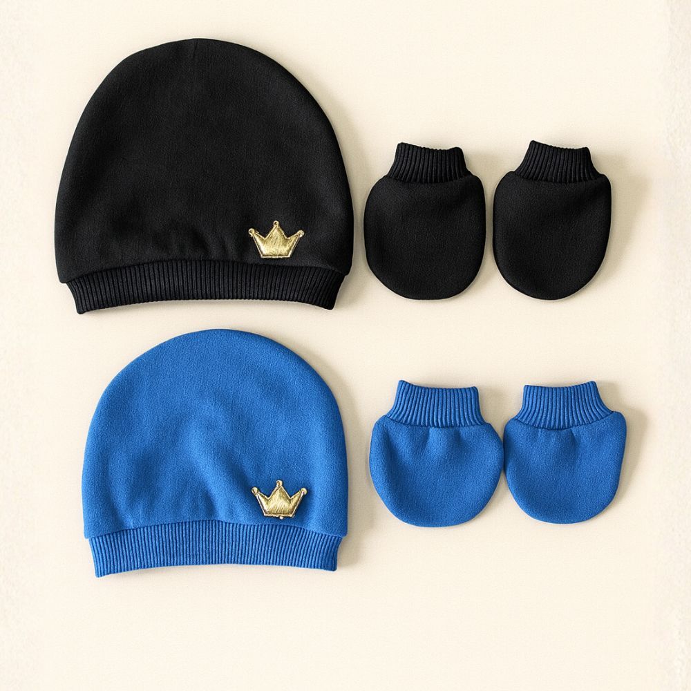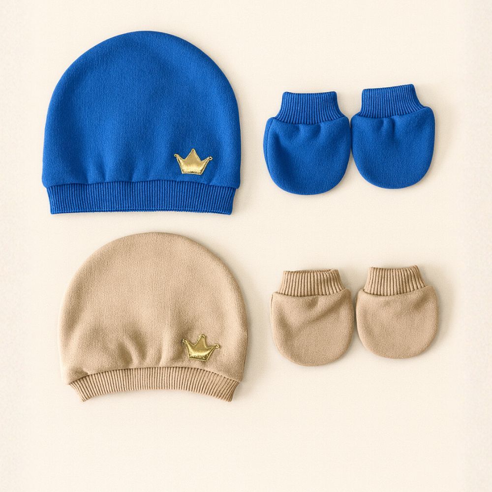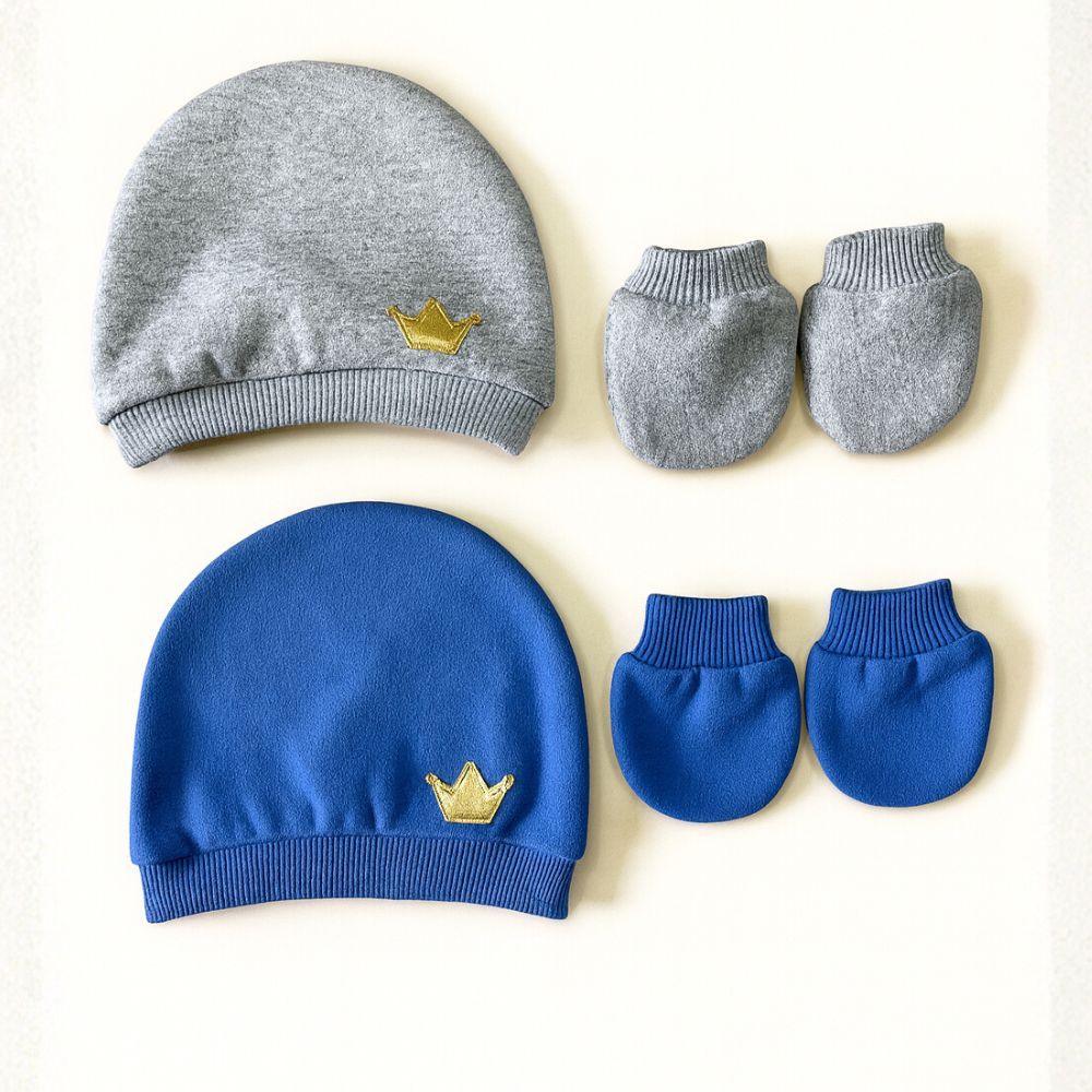 Kit 2 Touca e 2 Luva Para Menino Bebê Recém Nascido RN Macia Confortável Saída Maternidade Gorro Capuz Quentinha