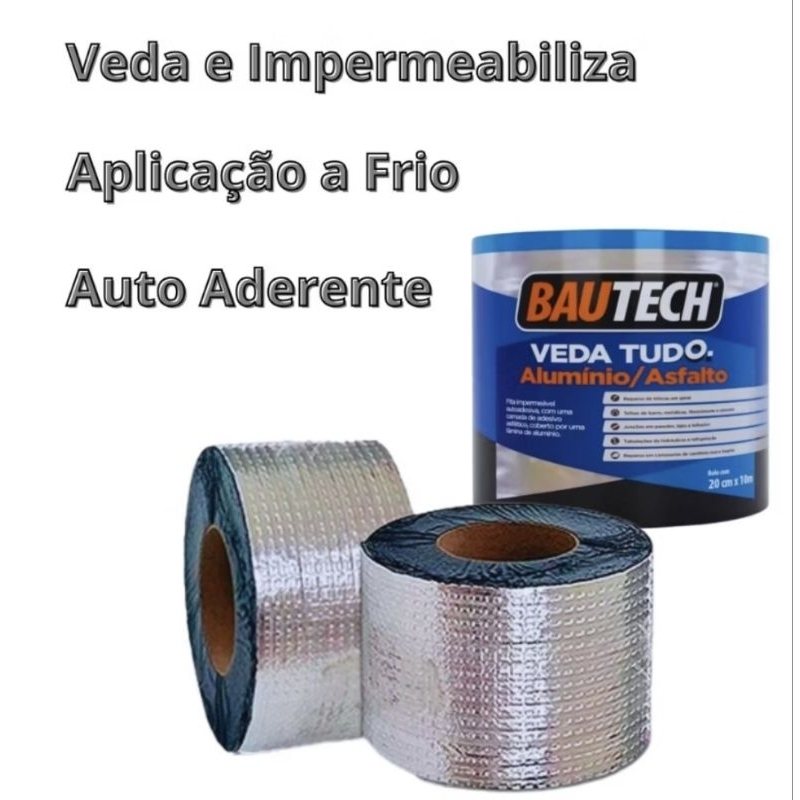 TAPA GOTEIRA FITA ASFÁLTICA Auto Adesiva Aluminizada Metalizada Impermeável reparo TELHAS LAJES BAÚ CAMINHÃO .