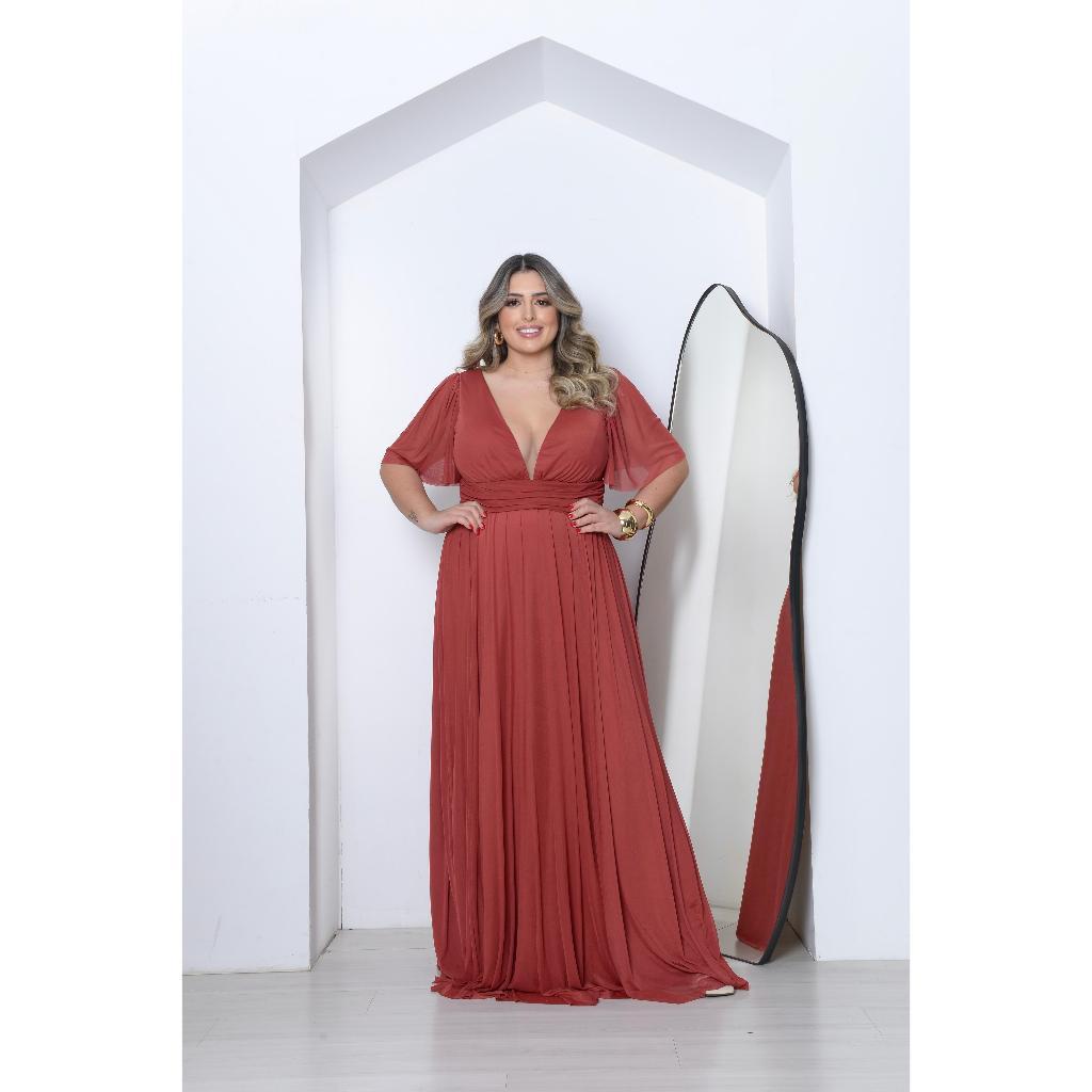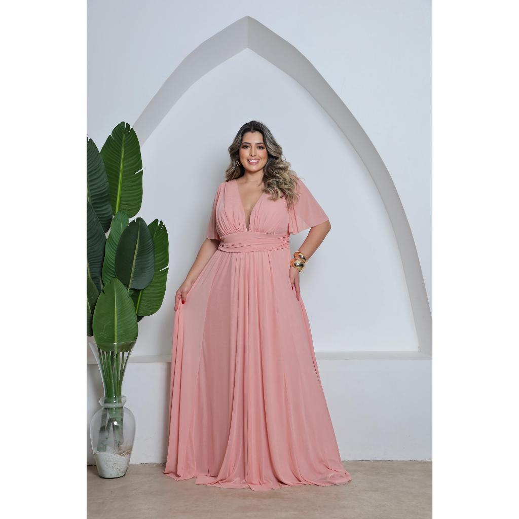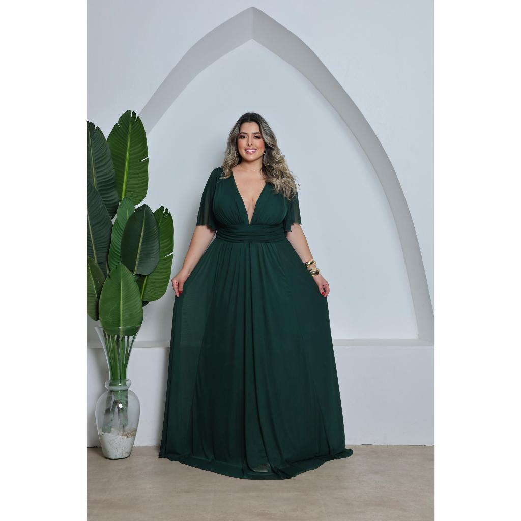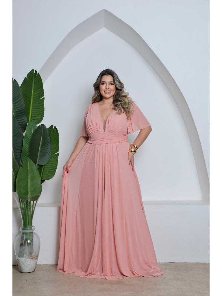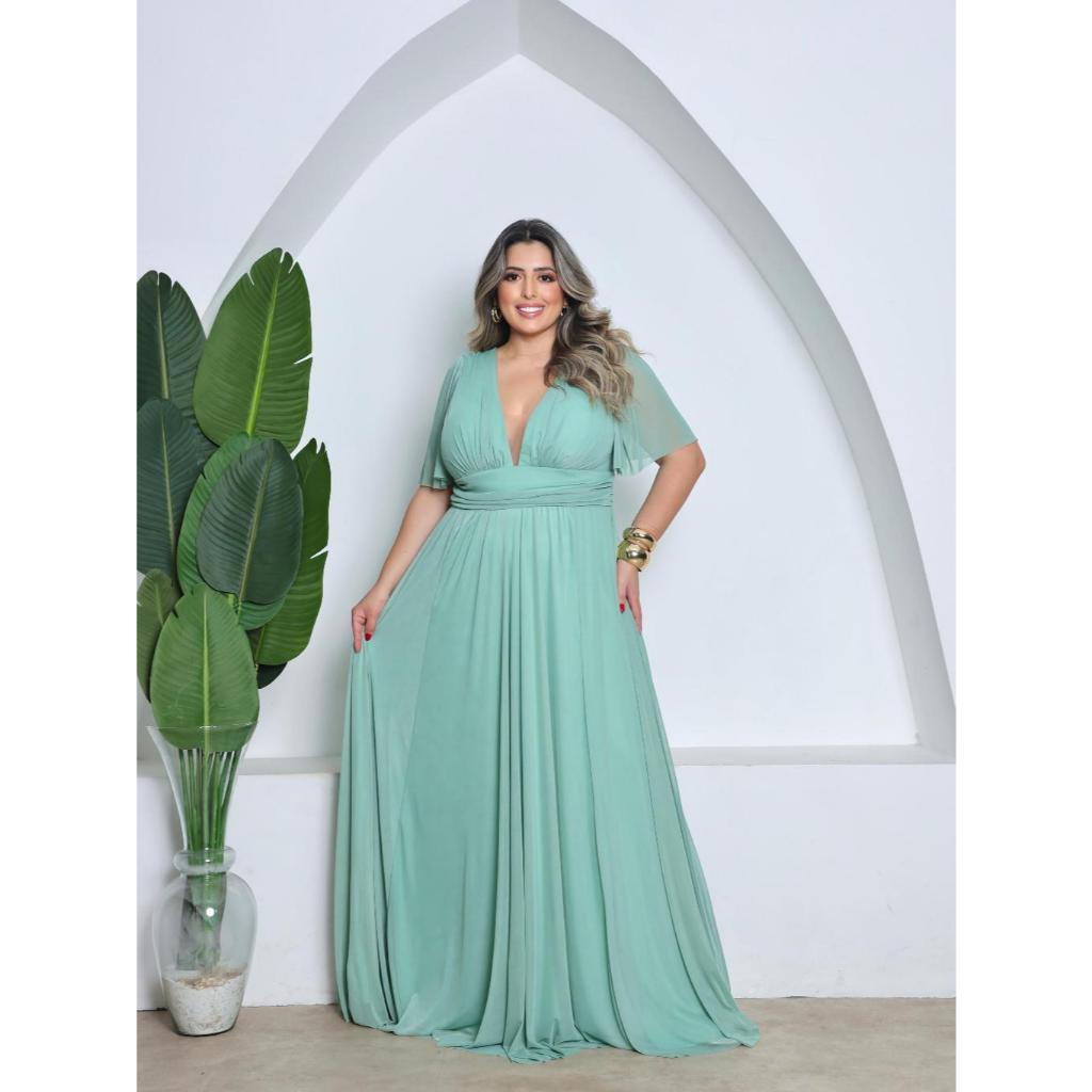 Vestido Plus Size de Tule com Manga 3/4 Ideal para Festas, Casamentos e Madrinhas
