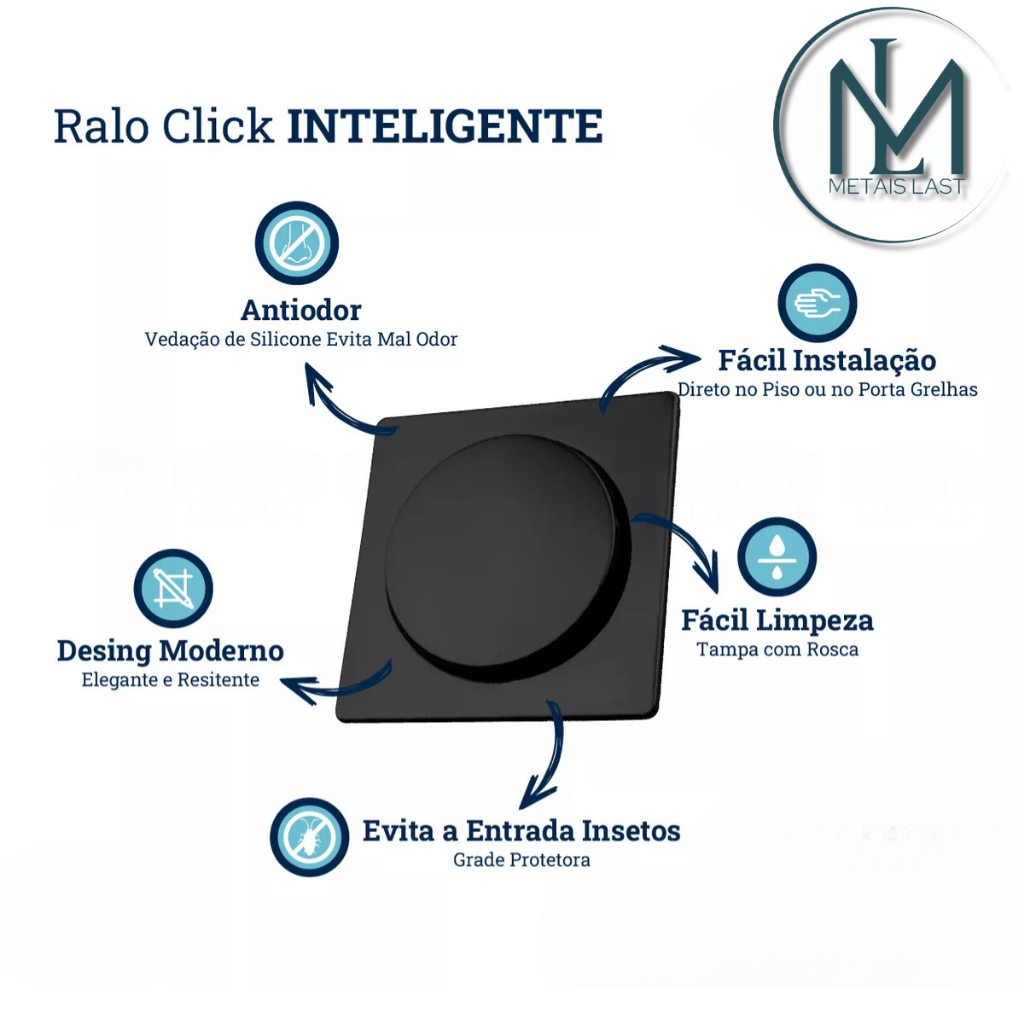 Ralo Click Up Inteligente Quadrado Banheiro Moderno 10x10 Cm Aço Inox