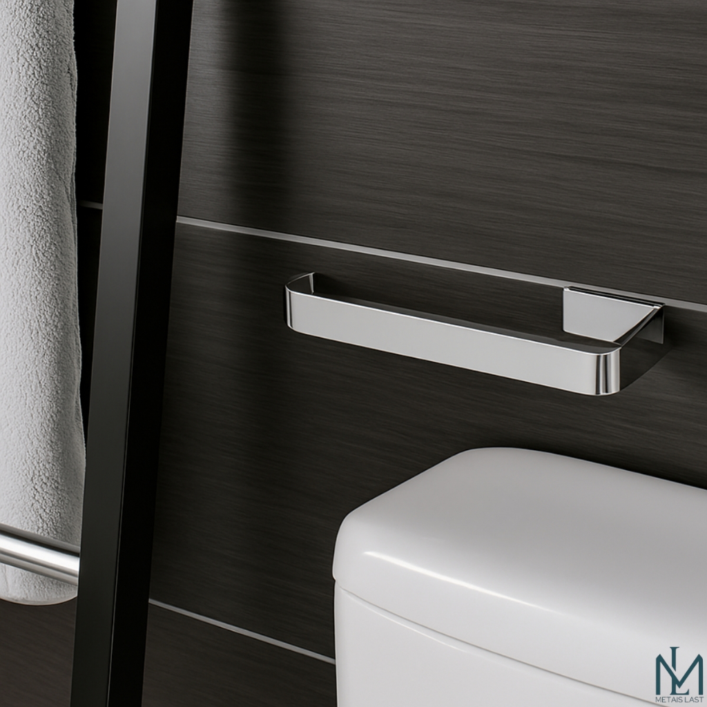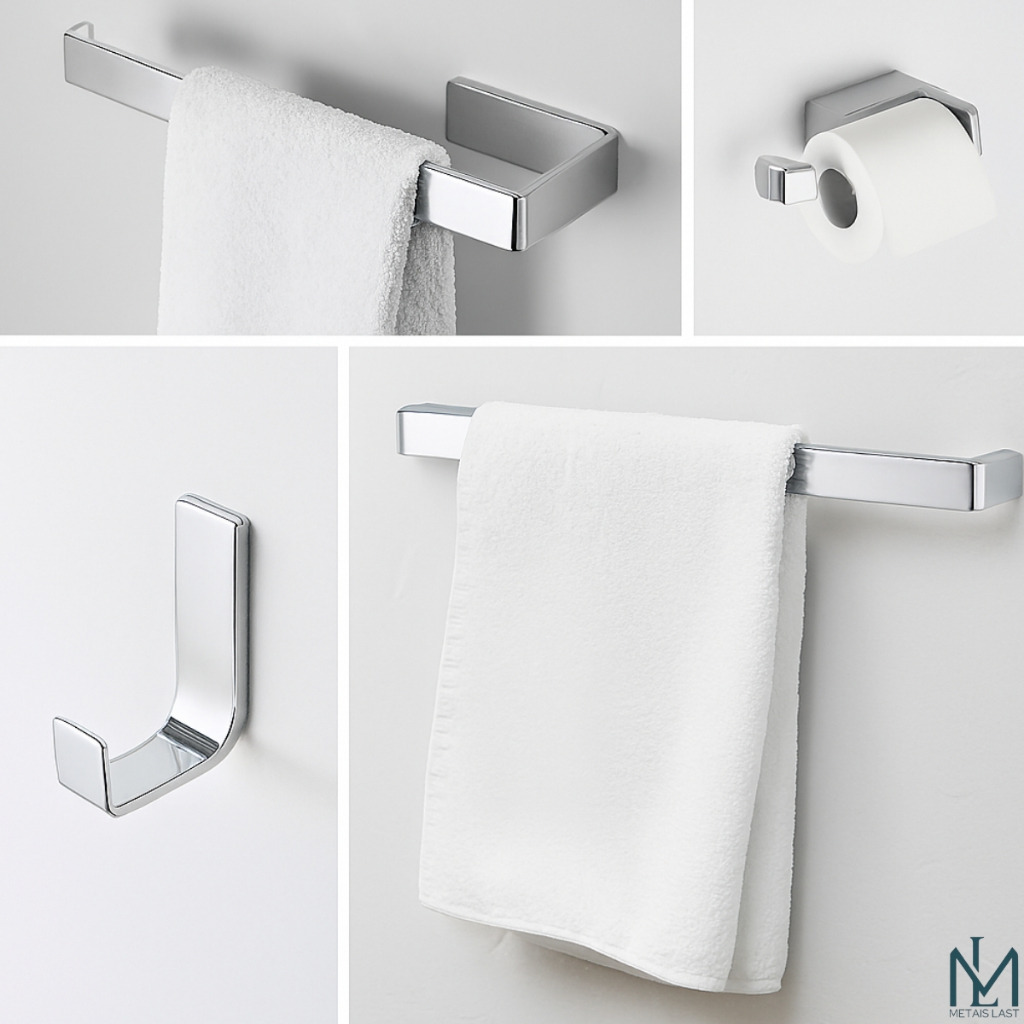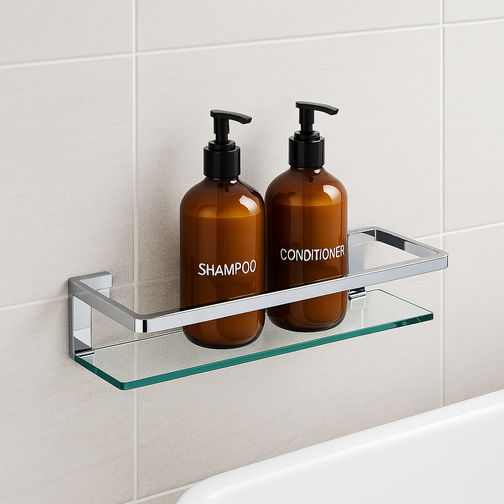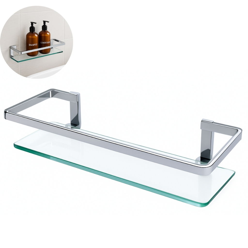 Kit Acessorios Para Banheiro Alumínio Quadrado 5 Peças Cromado + Porta Shampoo Reto Vidro