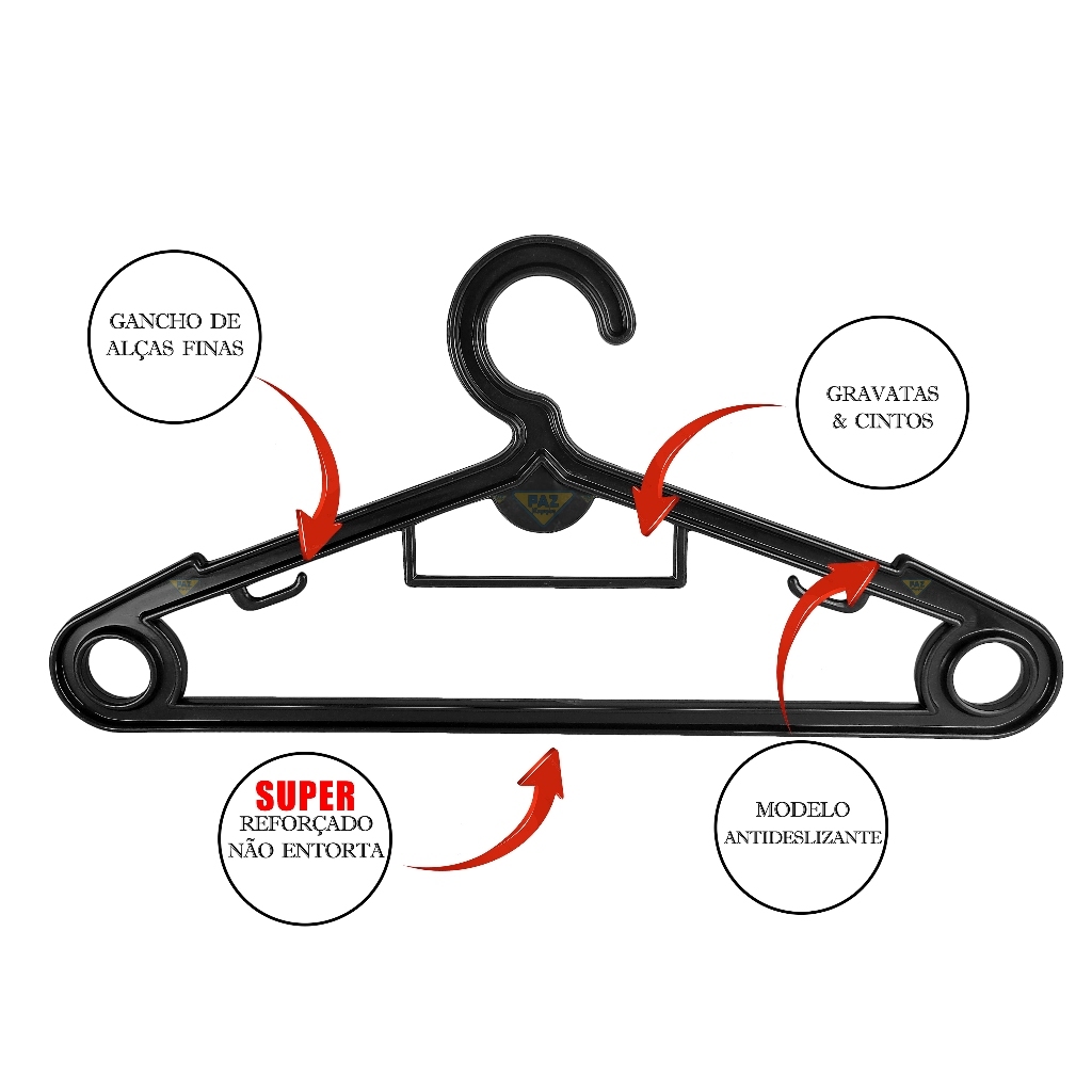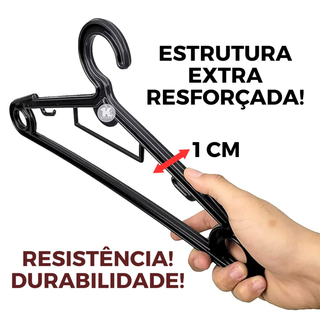 Kit Cabide MEGA REFORÇADO BIG SMART Estrutura 1CM Para Roupas Pesadas Jogo 50 Unidades