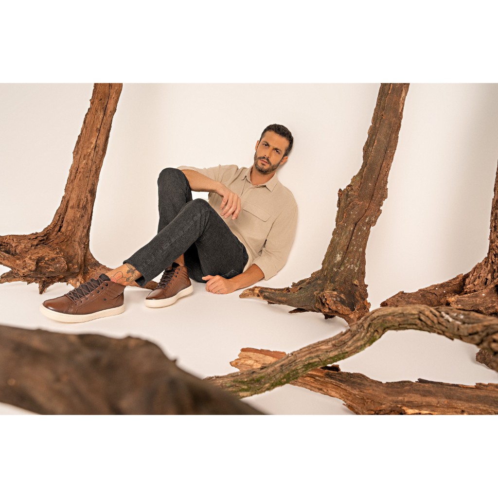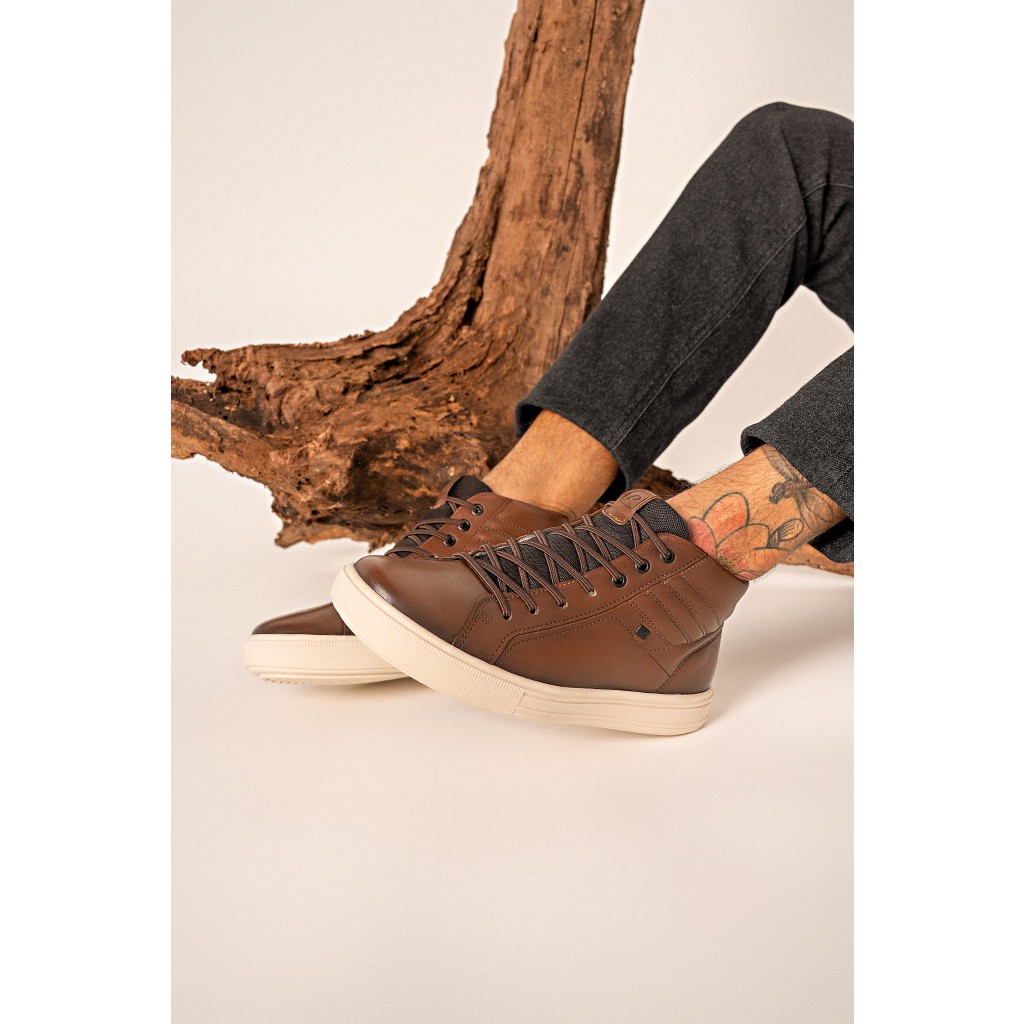 Sapatênis Masculino Cano Alto Bota Casual Pegada Couro Legitimo Calce Fácil Elastico Presente Leve