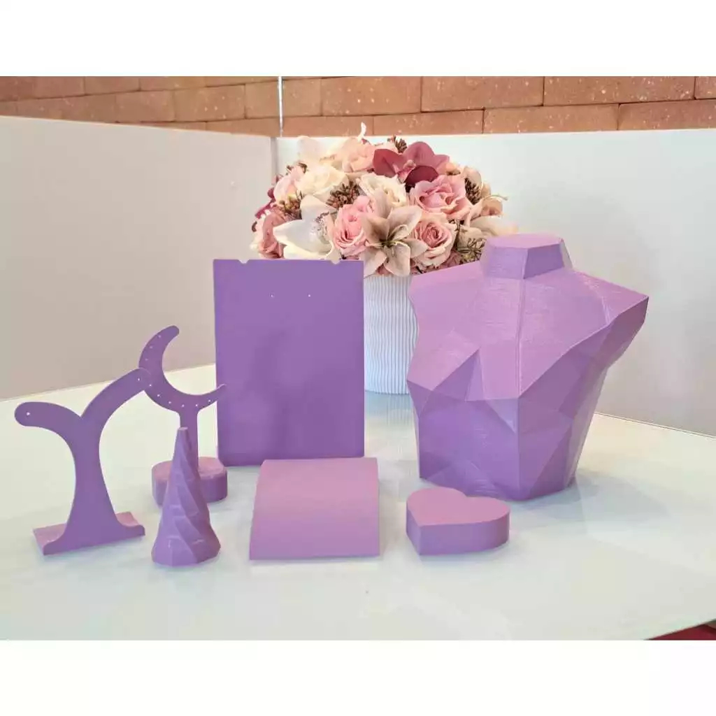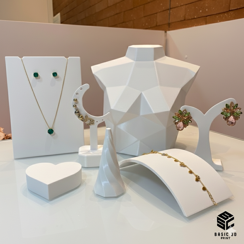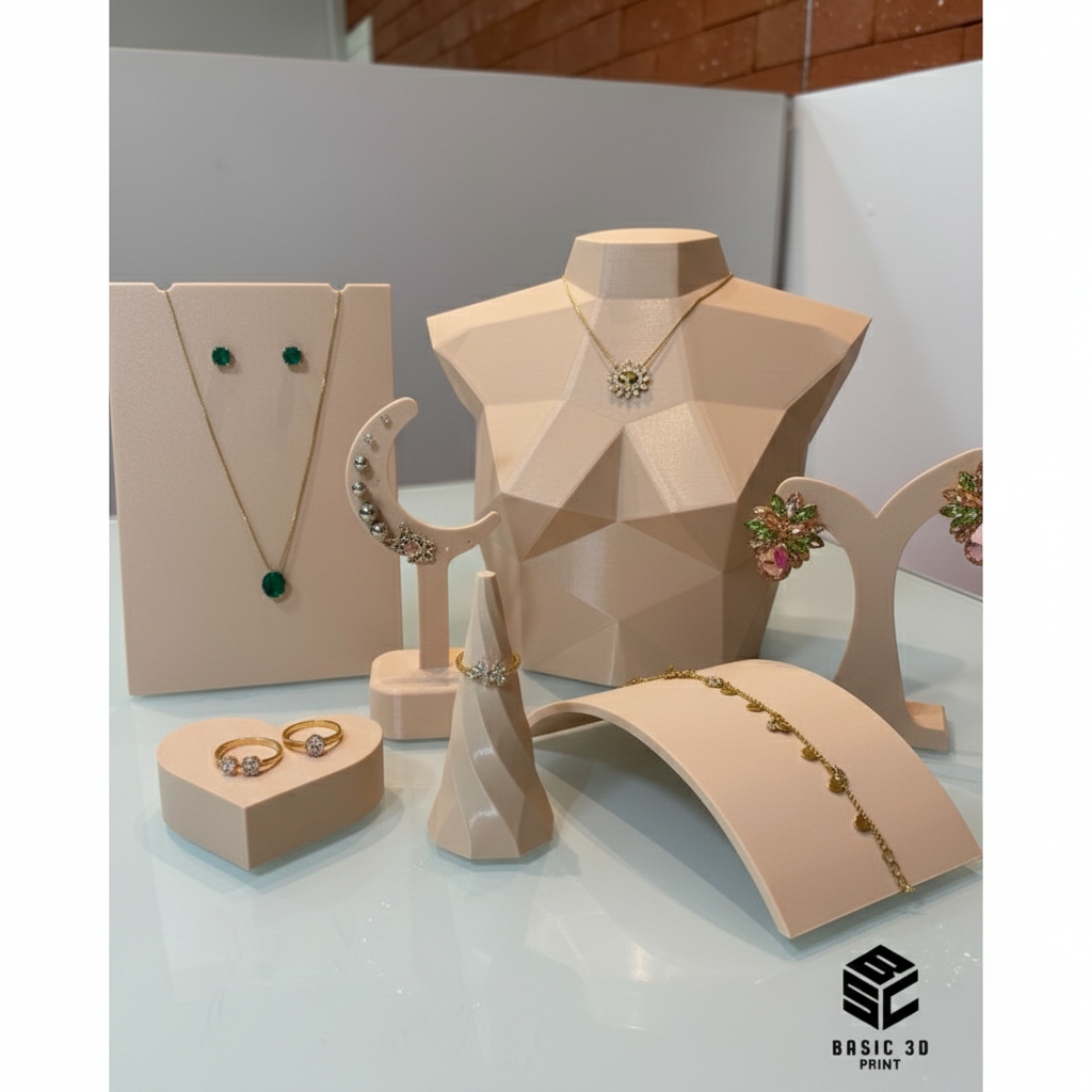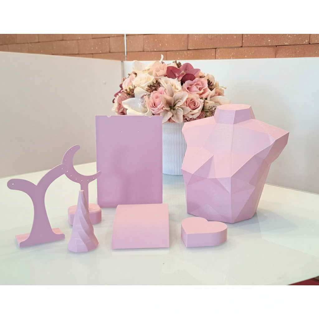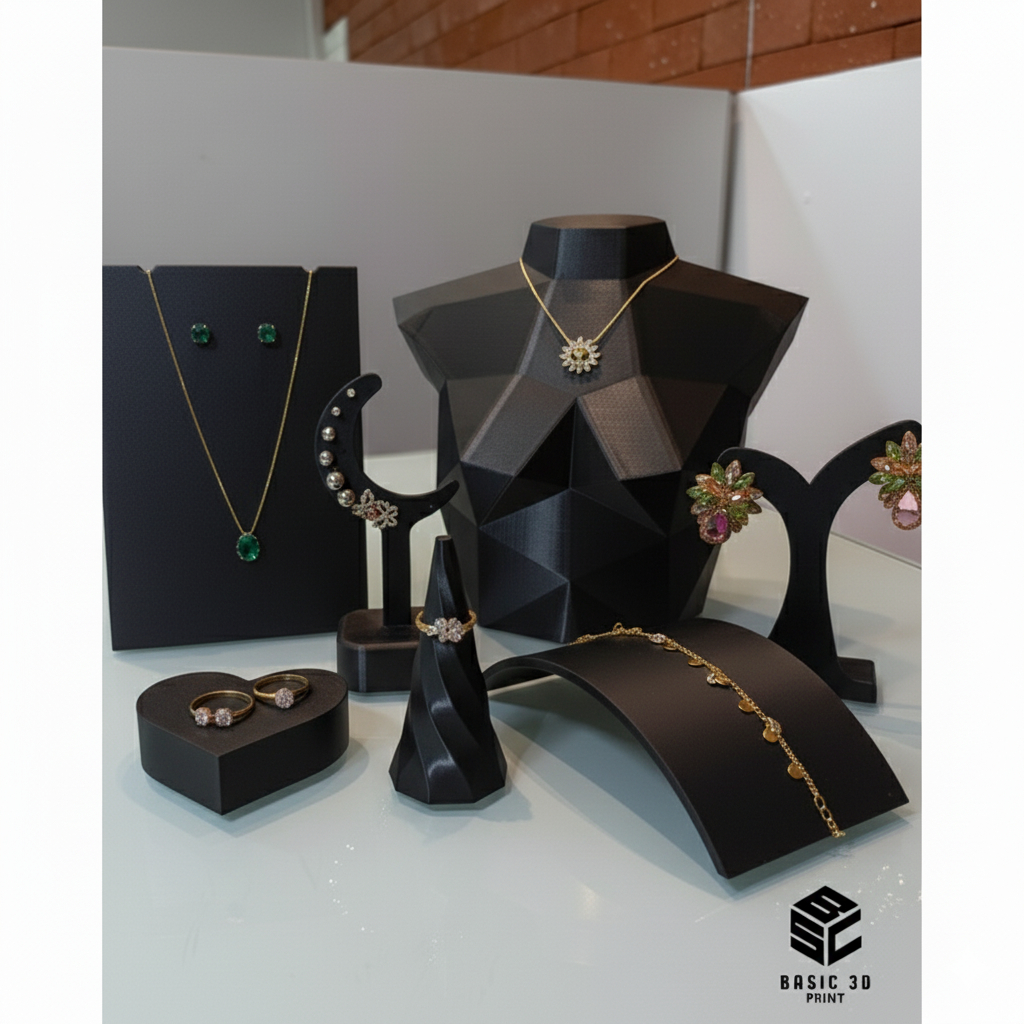 Kit Expositor de Joias 7 Peças Lowpoly – Mostruário para Semijoias, Pratas e Bijuterias Vitrine Loja