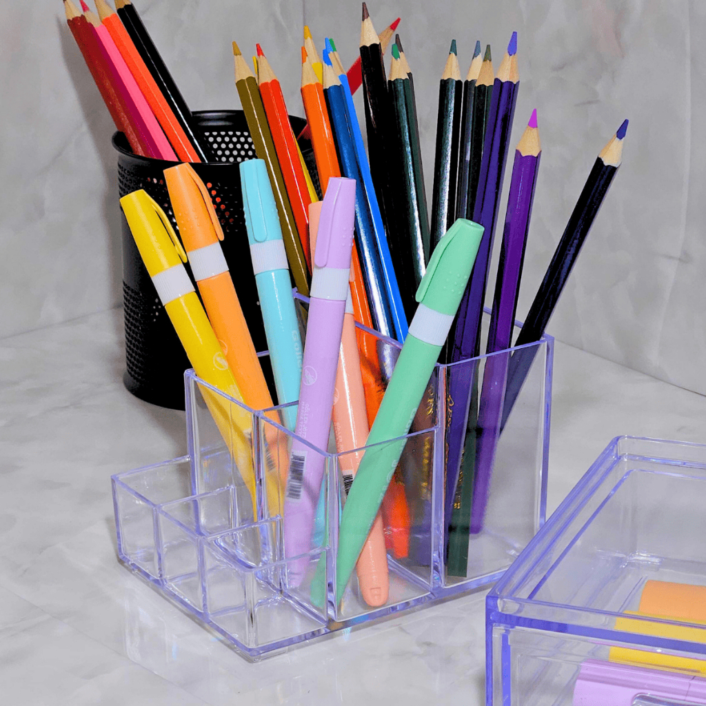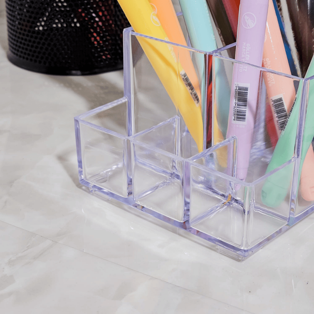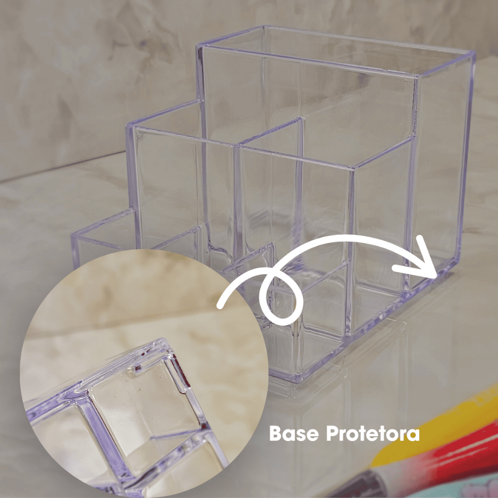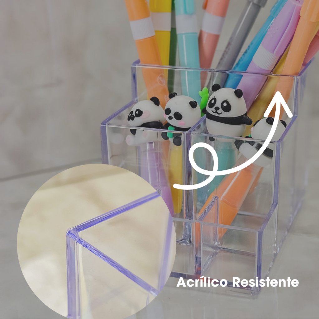 Organizador Com Divisória Acrílico Paramount Canetas Porta Treco Pincel Lápis Marcadores Escritório