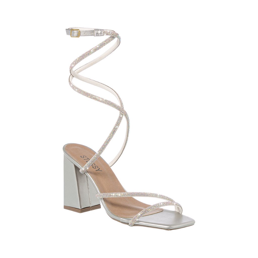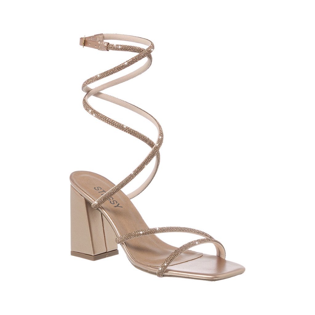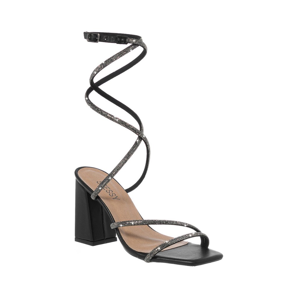 Sandália Feminina Festa Salto Bloco Alto Amarração Brilho Strass Luxo Tendência Confortável