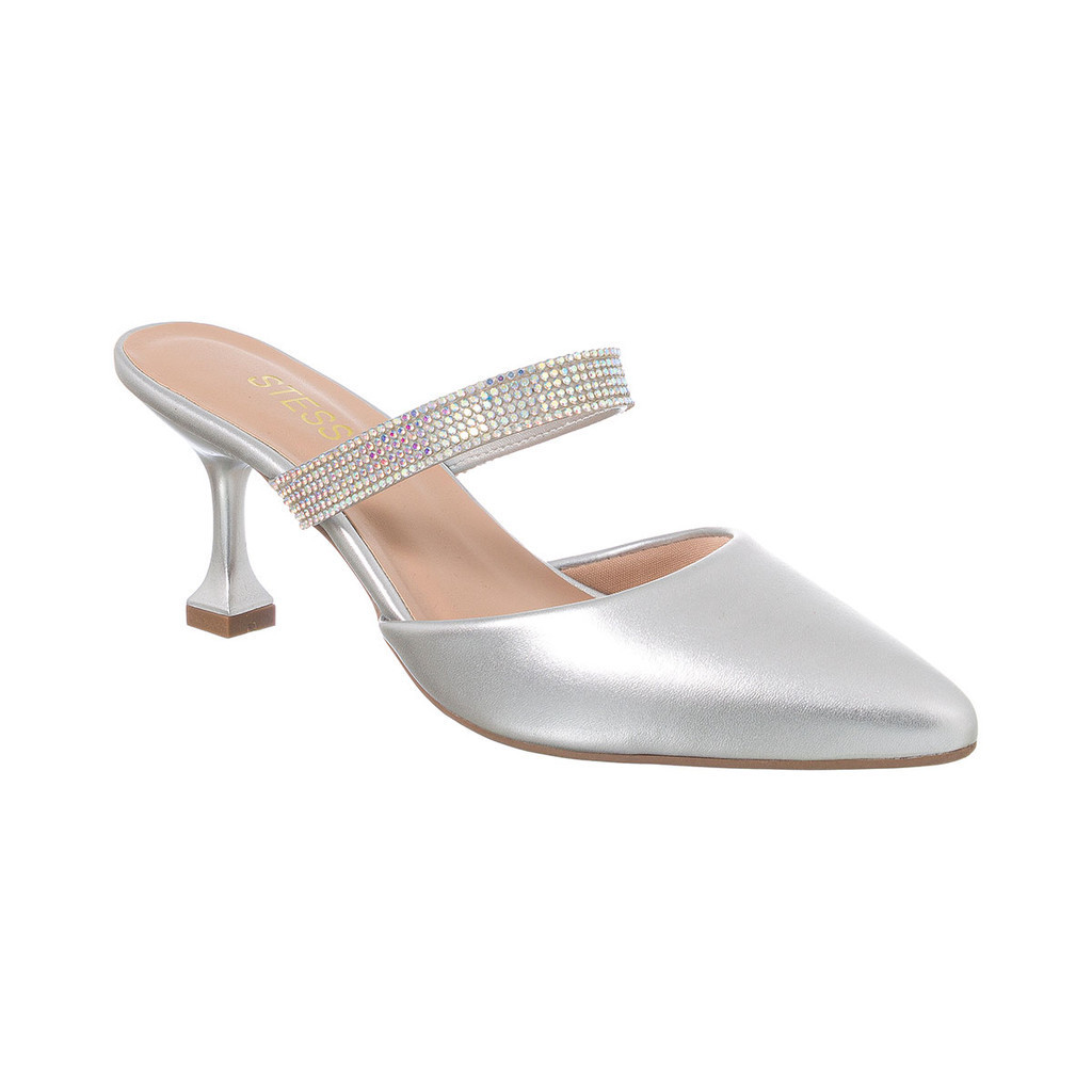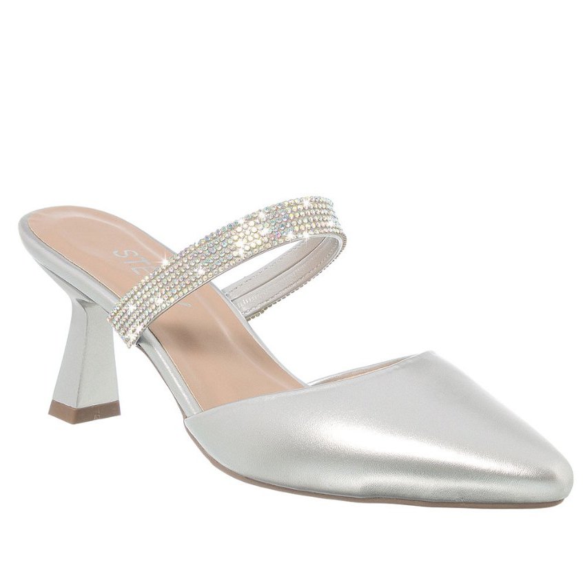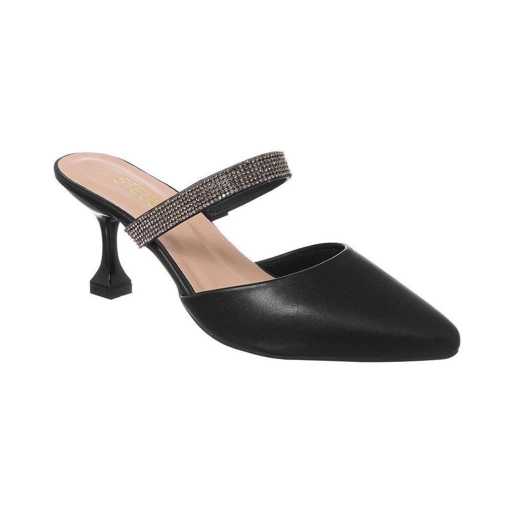 Scarpin Feminino Mule Salto Taça Baixo Bico Fino Brilho Strass Brilhante cristal Confortável Festa