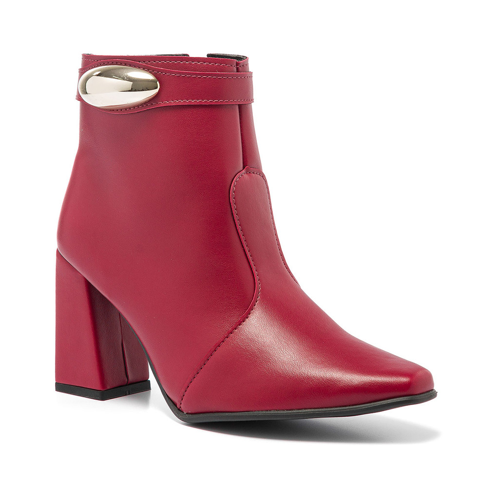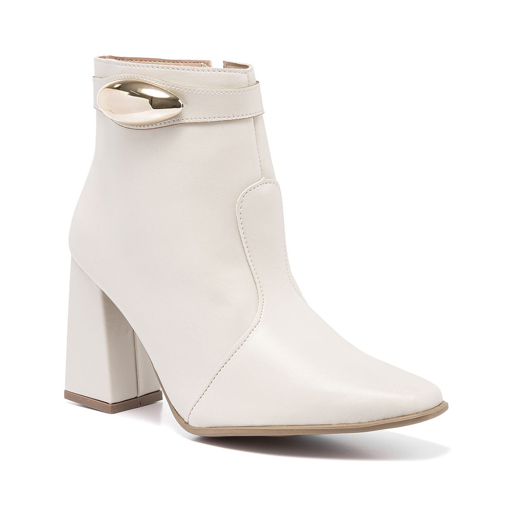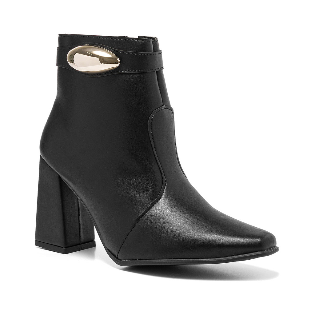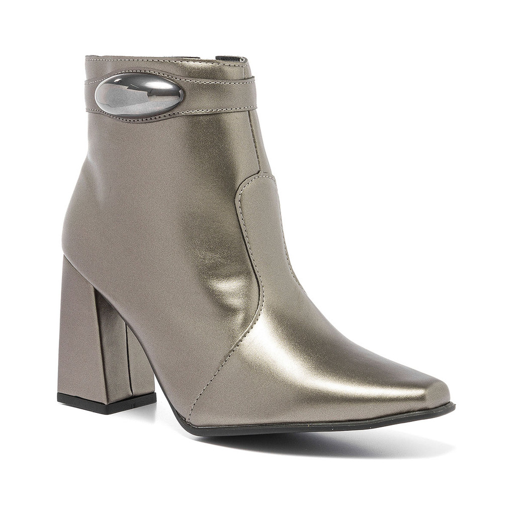Bota Feminina Cano Curto Lesma Metalizada Salto Bloco Casual Lançamento Confortável