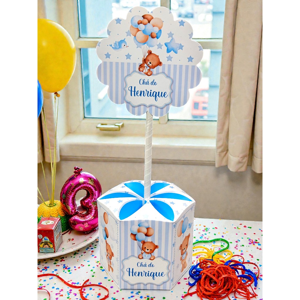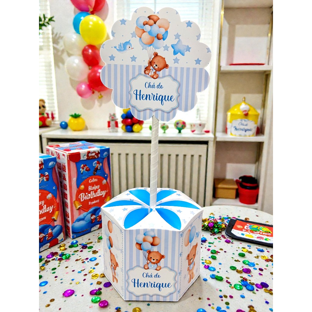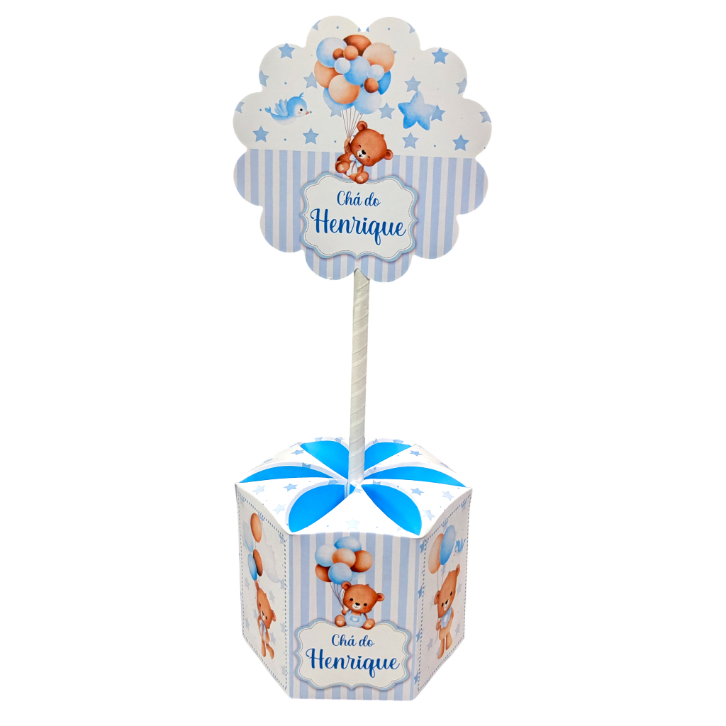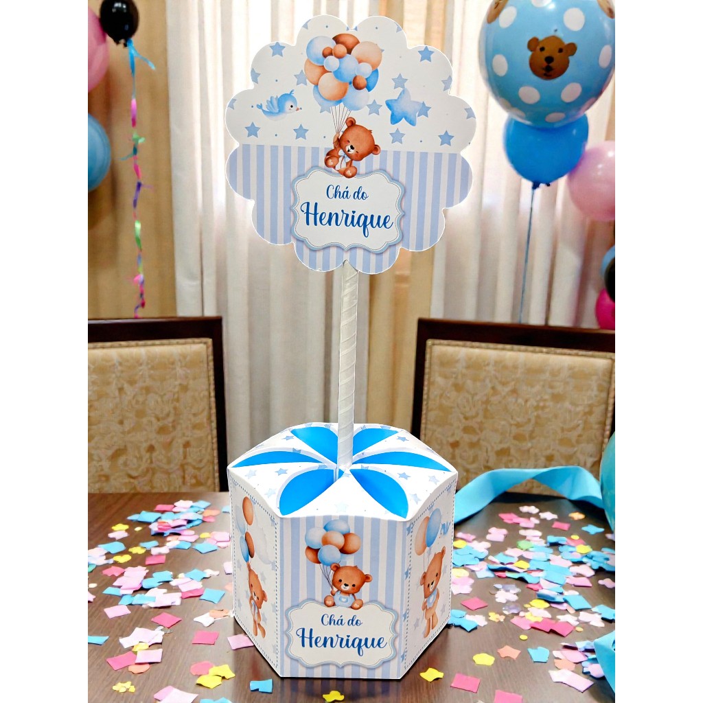 Kit 10 Unidades Centro de Mesa Chá de Bebê Festa Ursinho Azul Balões Baloeiro Tamanho Grande