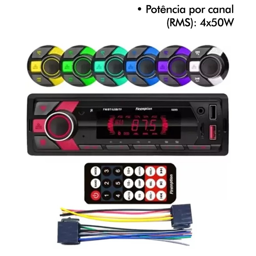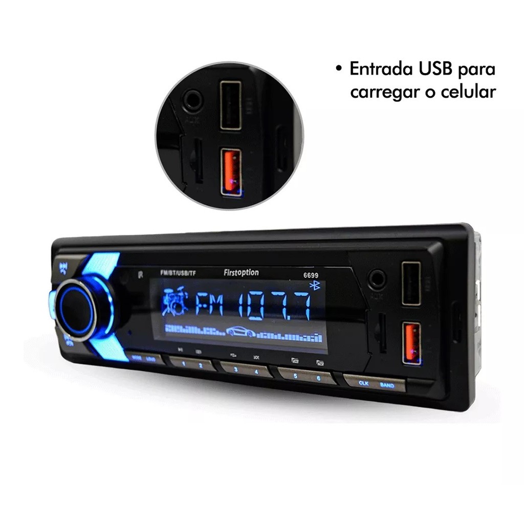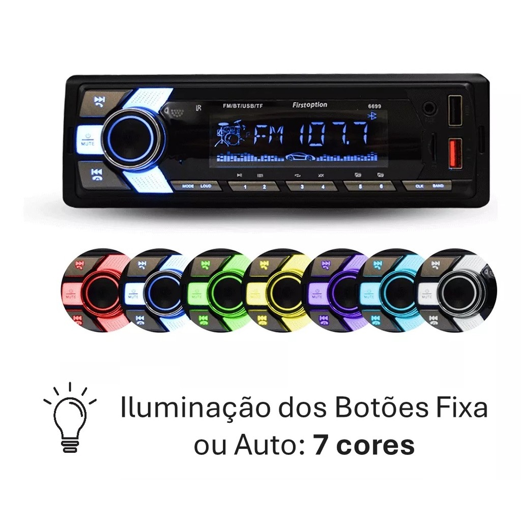 Rádio Mp3 Som Automotivo Bluetooth 7 Cores 200w Pen Drive Sd