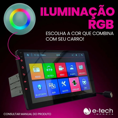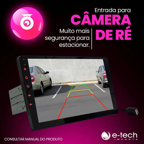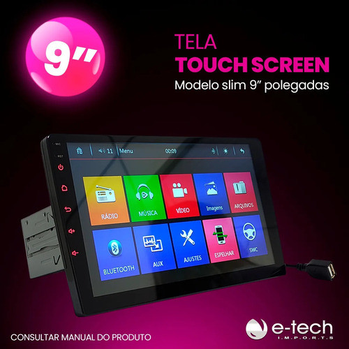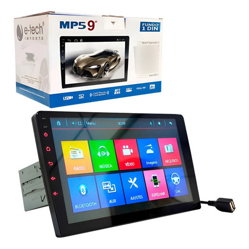 Central Multimídia Mp5 1 Din 9 Pol Bluetooth Usb Fm + Câmera Preto