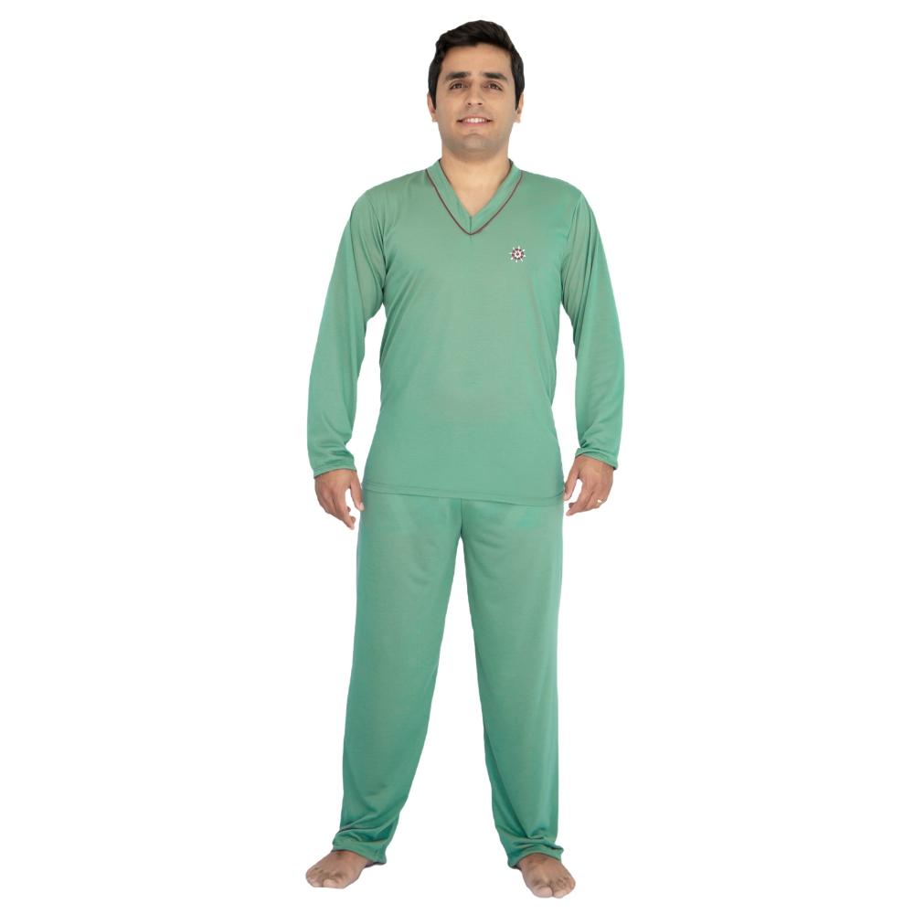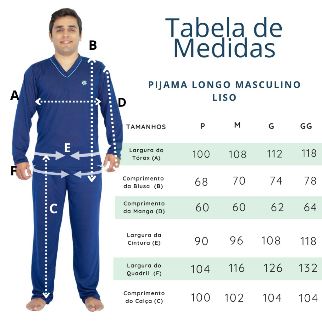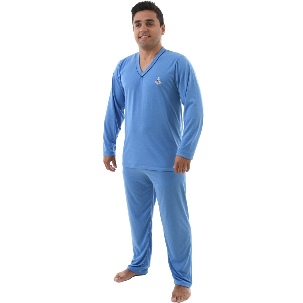 Pijama Masculino Inverno Adulto Liso Malha Macia Manga E Calça Comprida