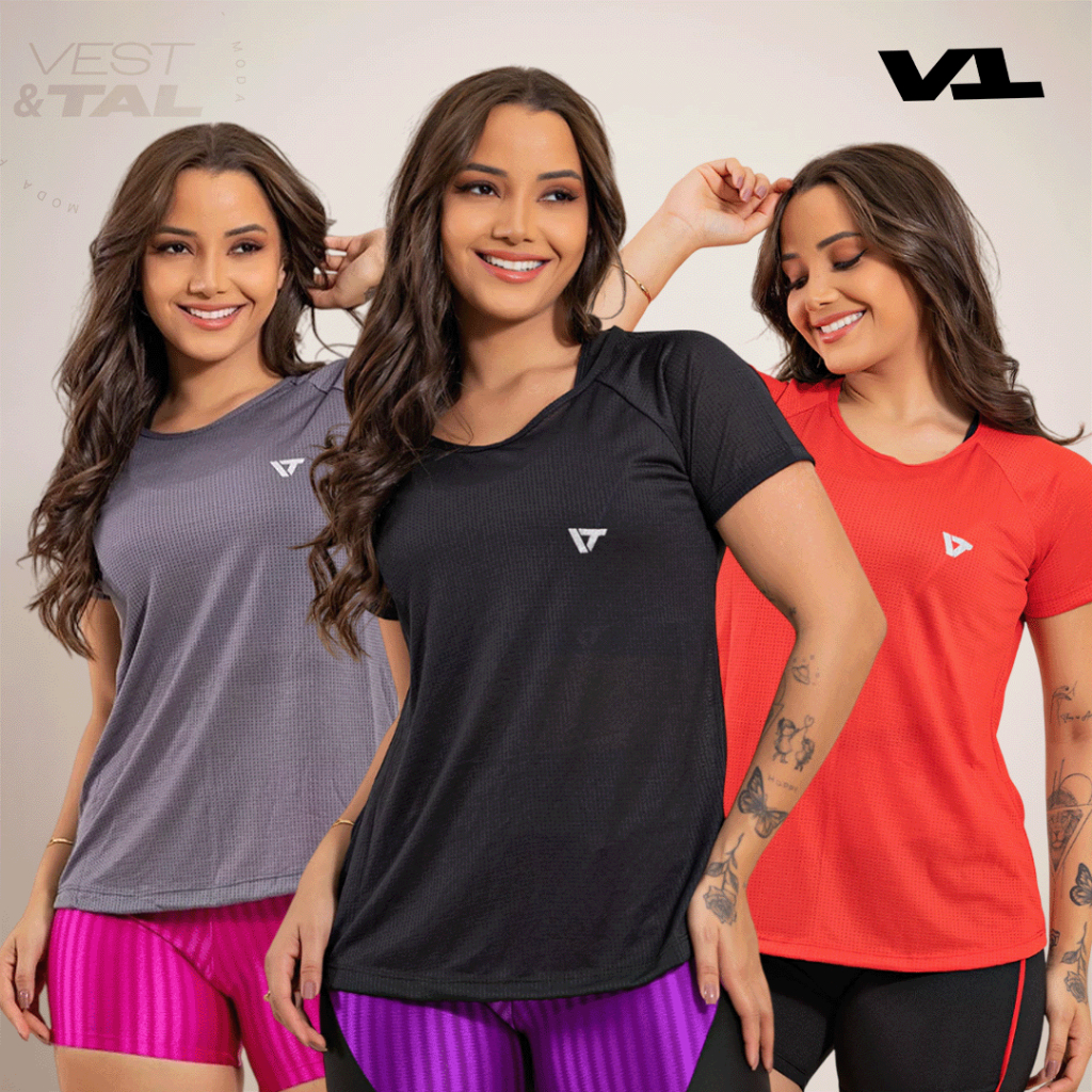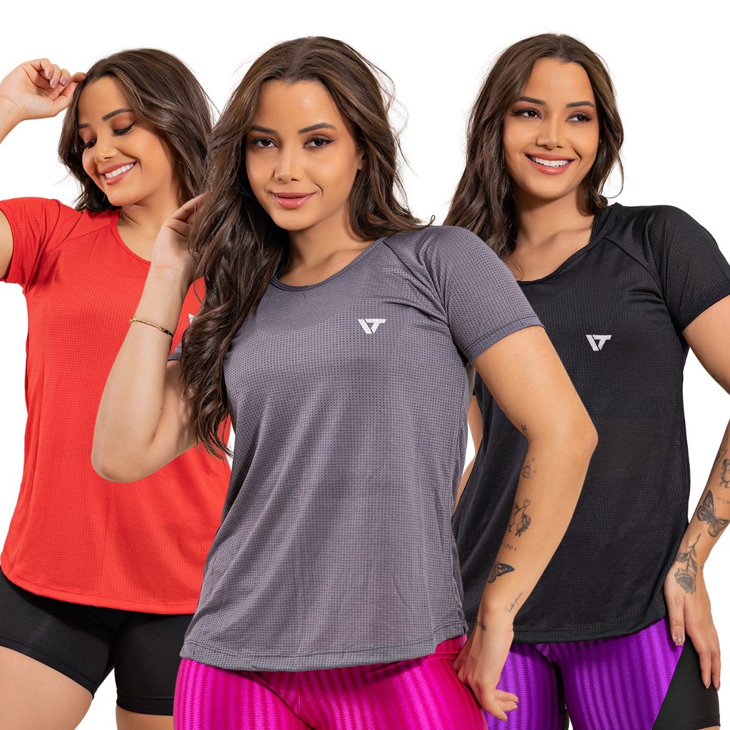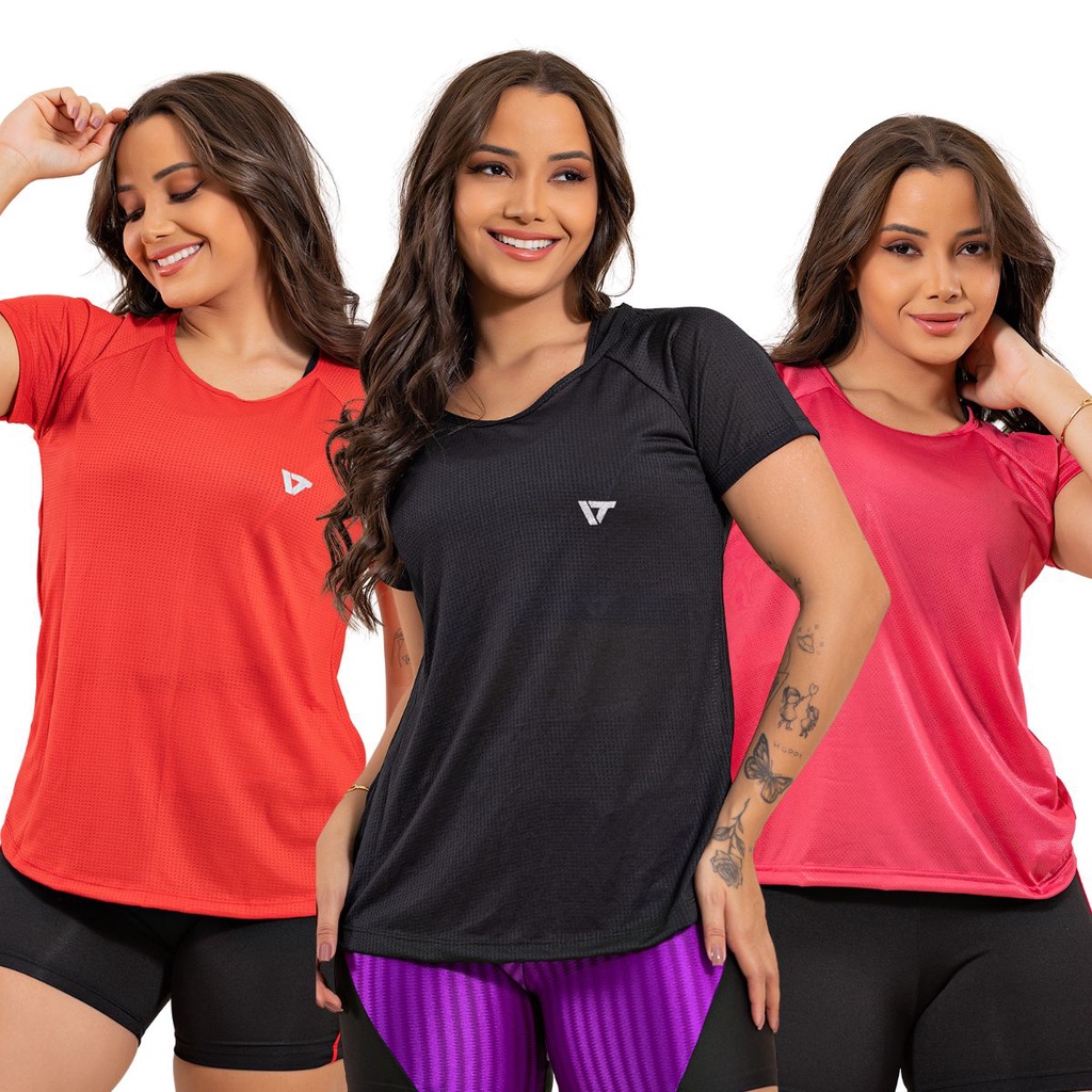 Kit 3 Camiseta Academia Feminina Camisa Dry Fit Treino Blusa