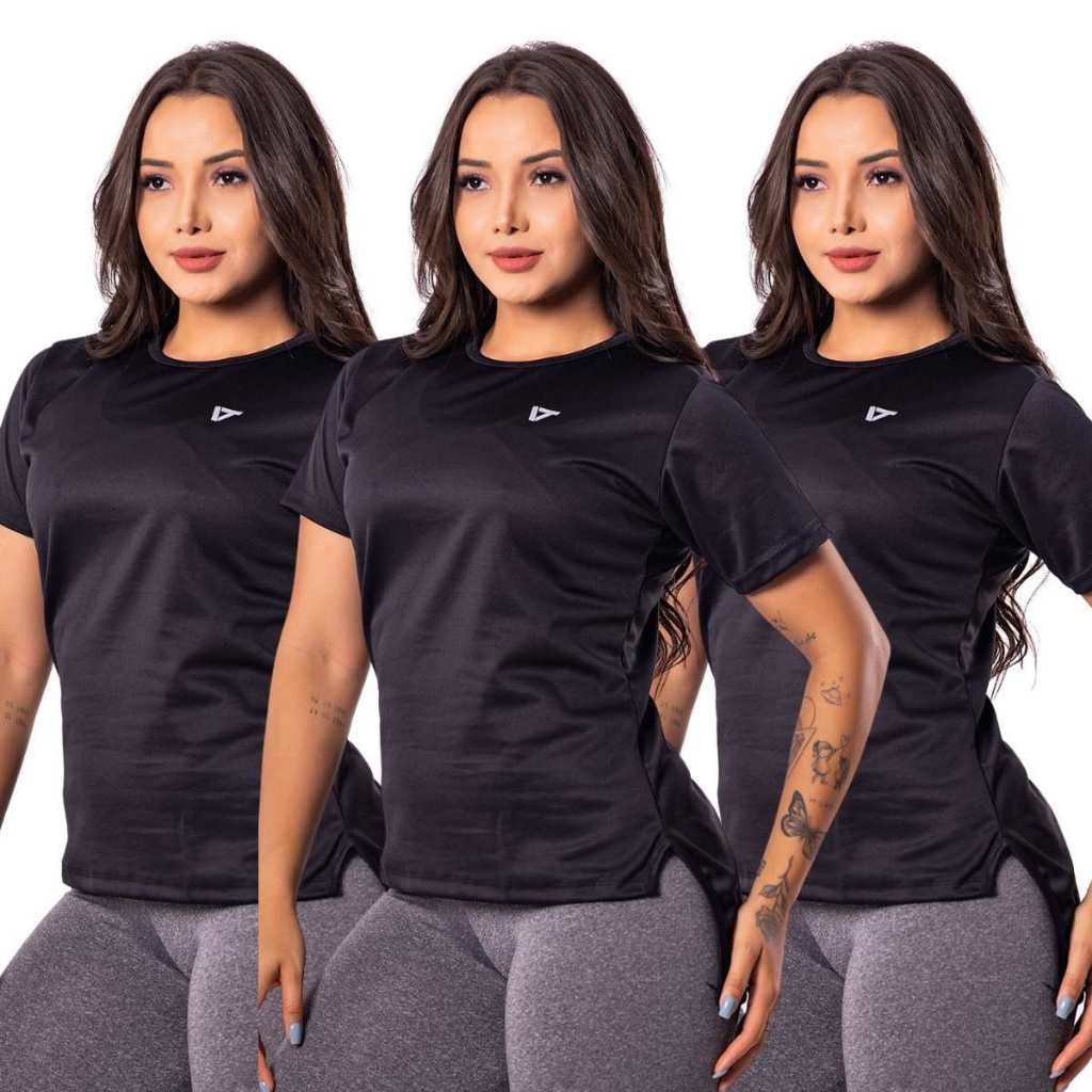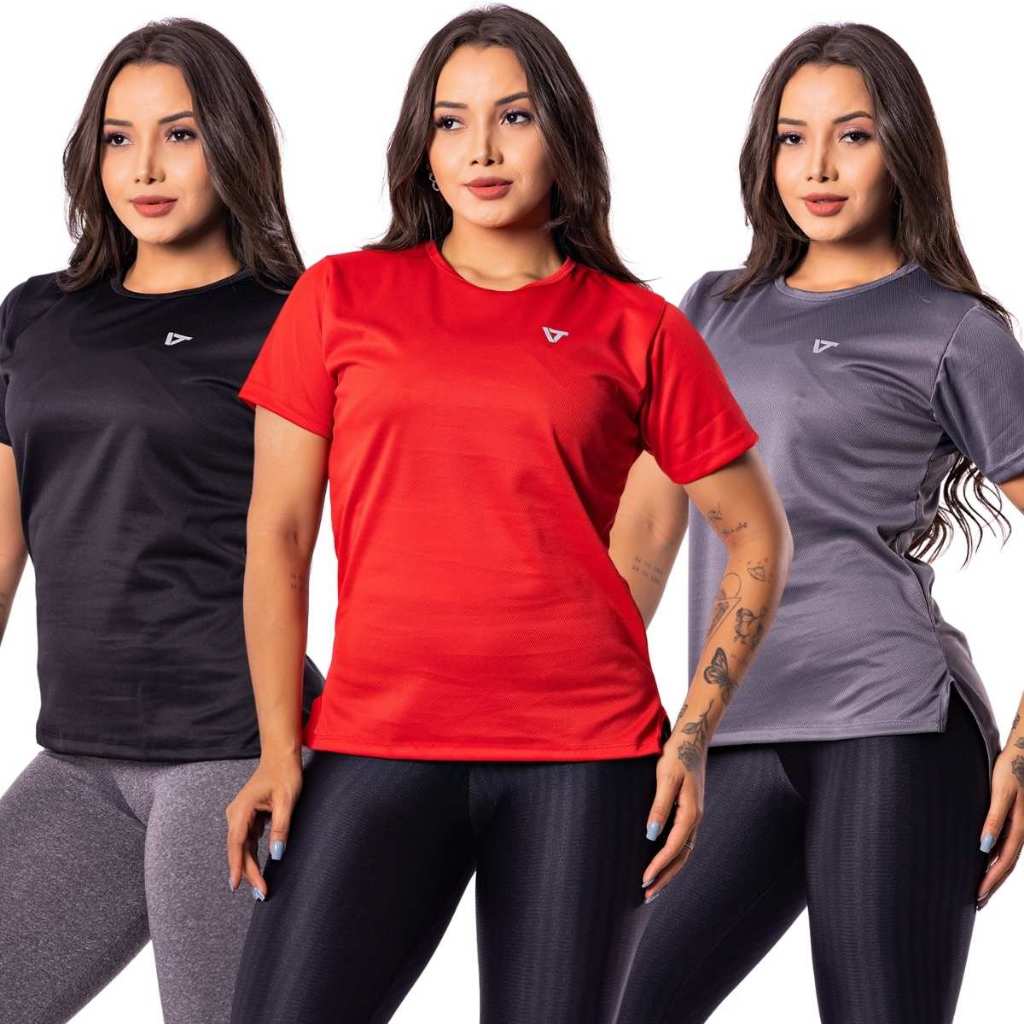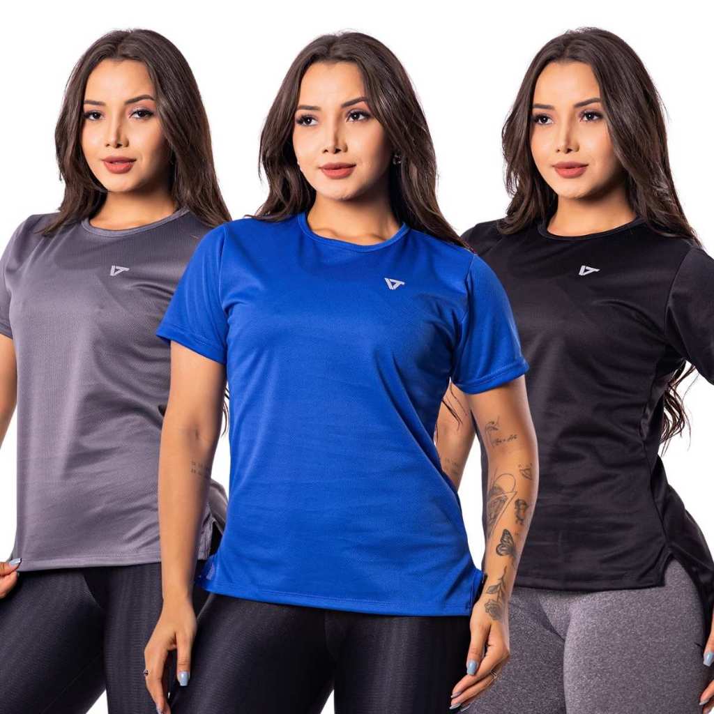 Kit 3 Blusa Mullet Fitness Dry Fit Camiseta Academia Feminina Corrida