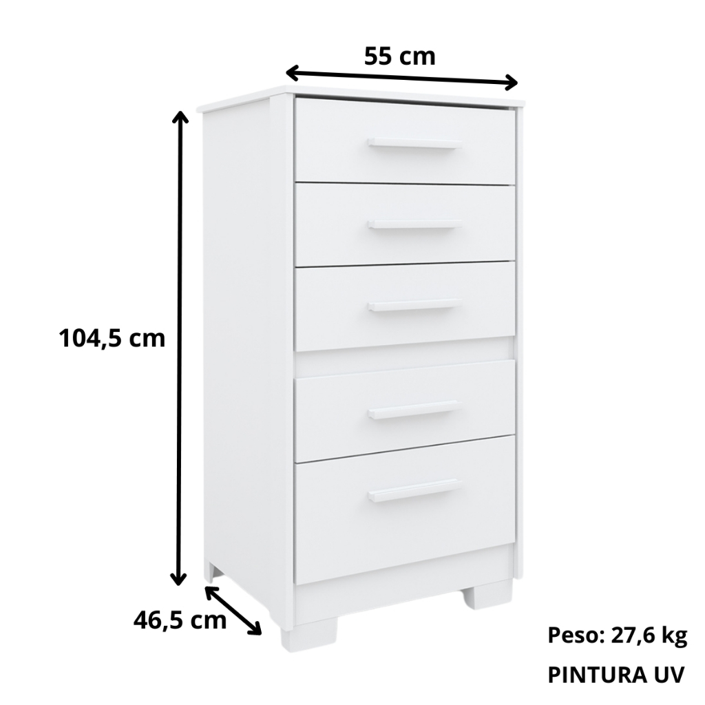 Cômoda Para Casas Quartos Reforçada 5 Gavetas Espaçosas Para Baby Gaveteiro Organizador Bebê Prymacy