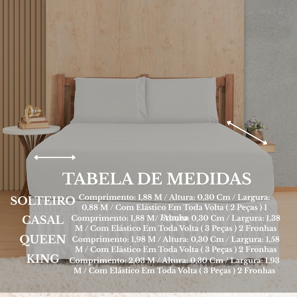 Kit Jogo de Lençol 3 peças 400 Fios Ponto Palito Cama Solteiro Casal Queen King Berço