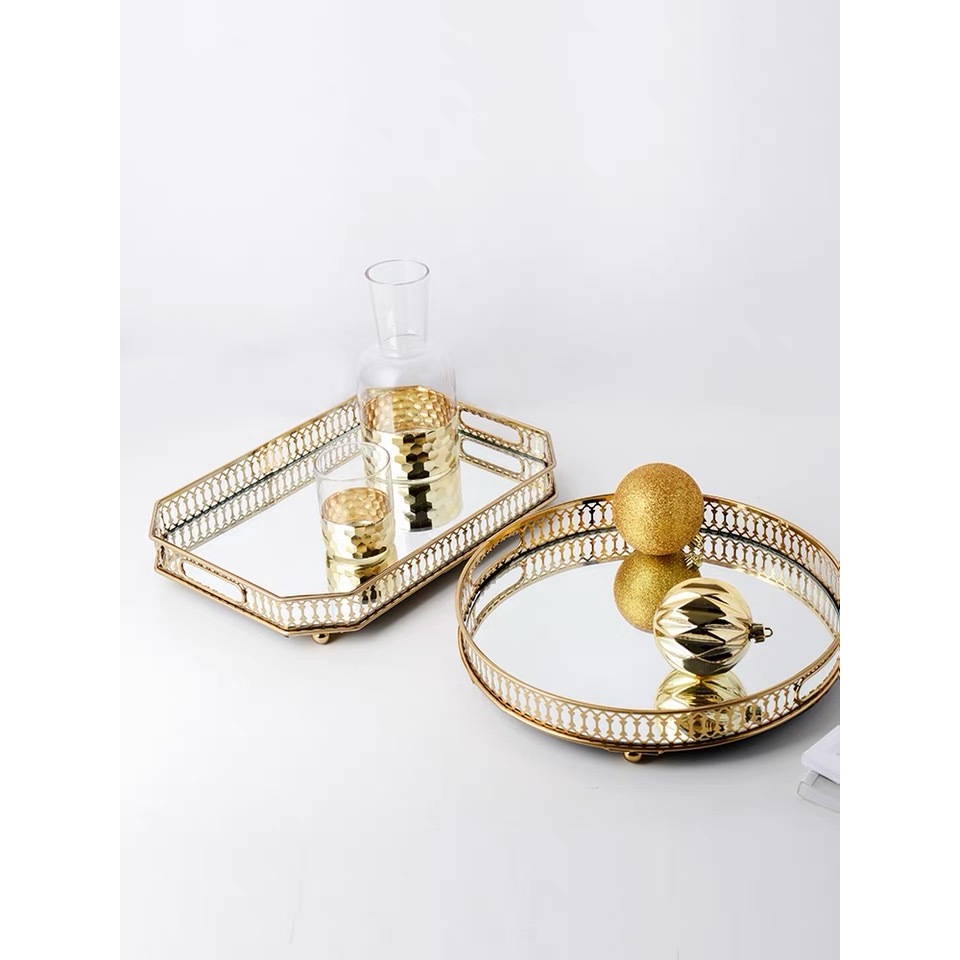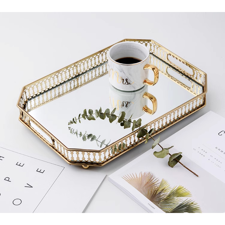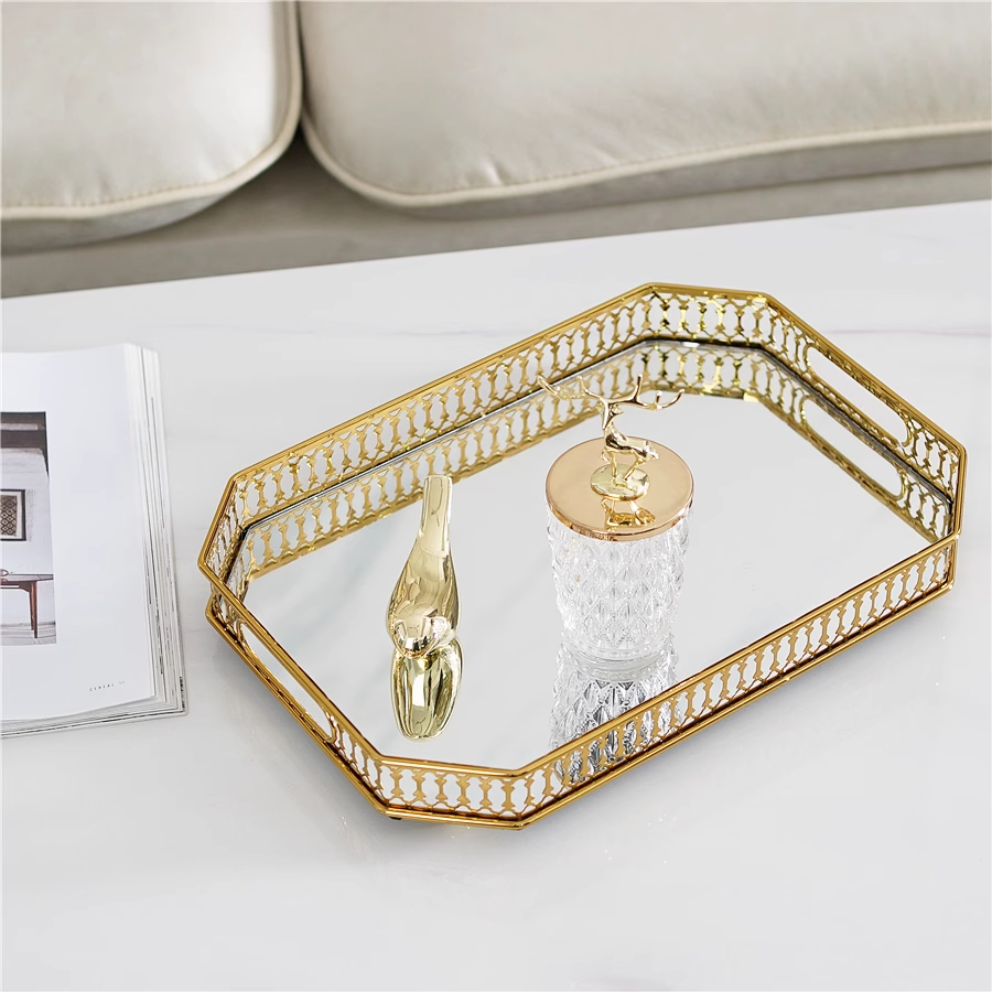 Bandeja de Decoração Espelhada com Detalhe Dourado