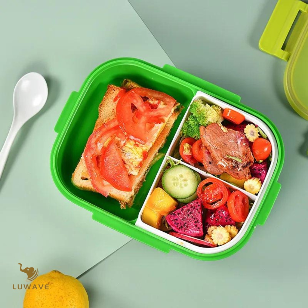 LUWAVE. Kit Marmita Lancheira e Garrafa 350ml e Kit Talheres(A tampa não pode ser aquecida junto)
