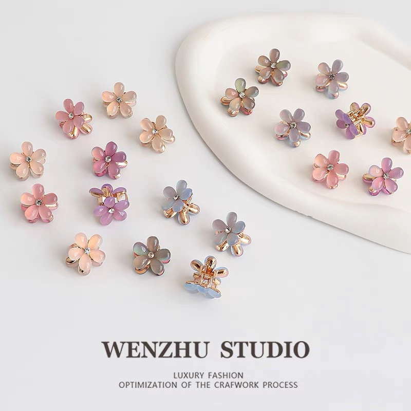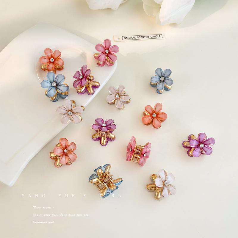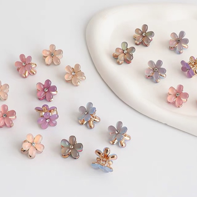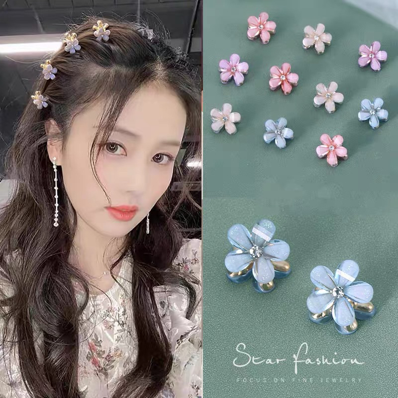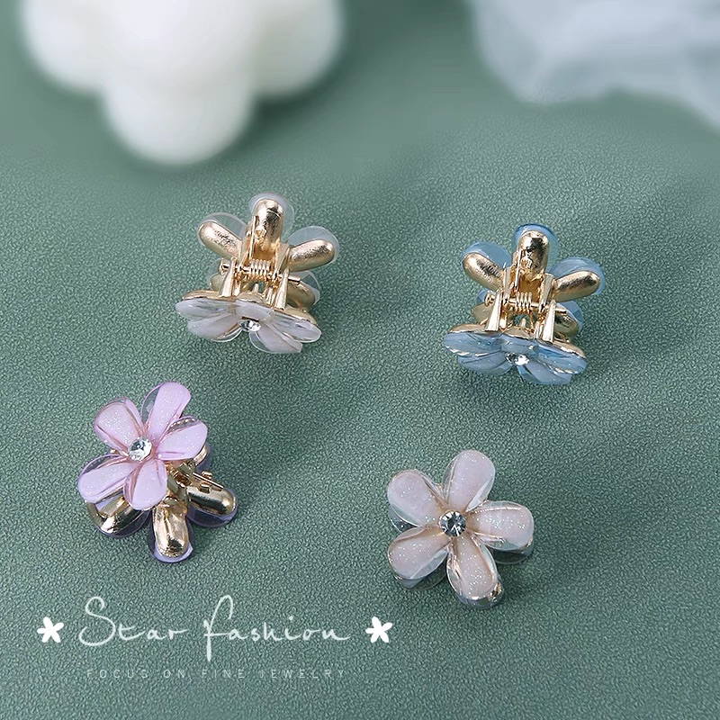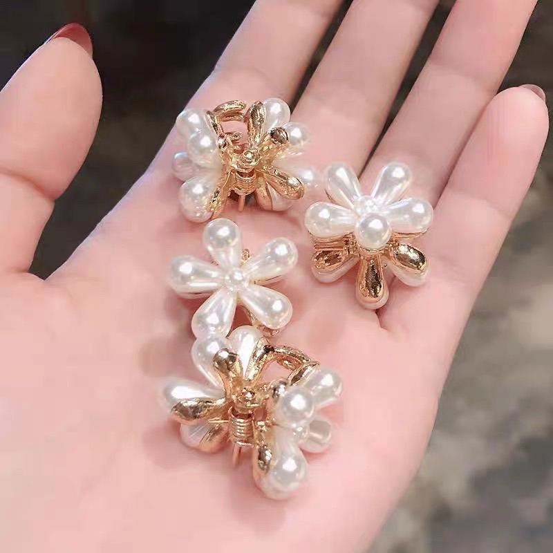 Kit 4 pçs mini piranhas para cabelo forma de Flor De Cristal e pérola
