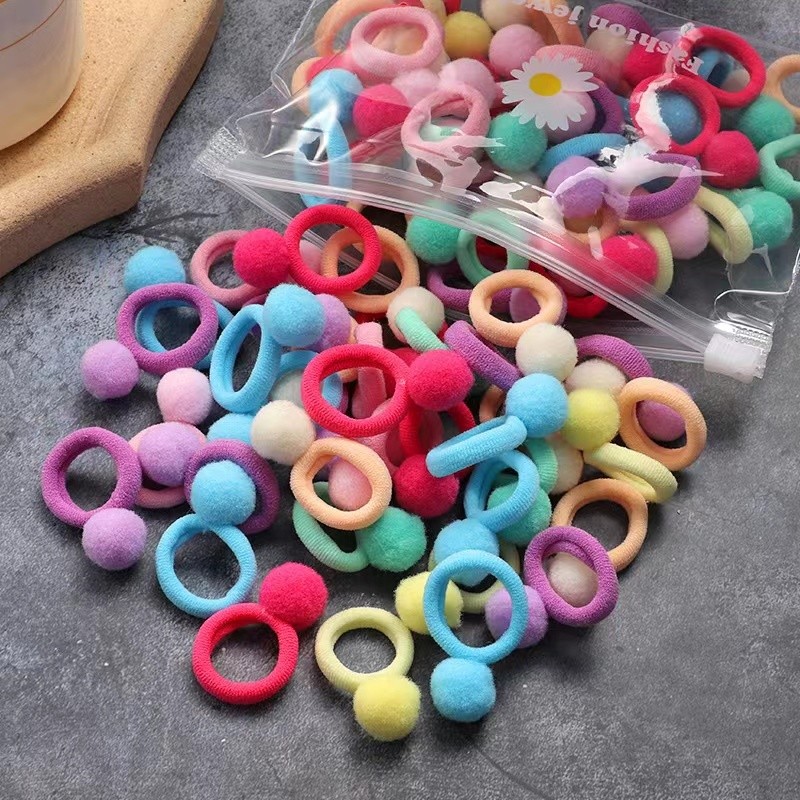 25/30 Peças Mini Elástico com pompom tipo meia xuxinha para cabelo Com Enfeite cor aleatorio