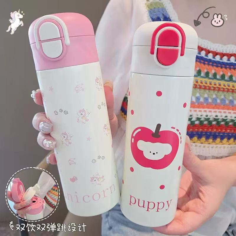 Garrafinha Squeeze Térmica Kids Infantil Escolar Aço Inox de Bico 450ML