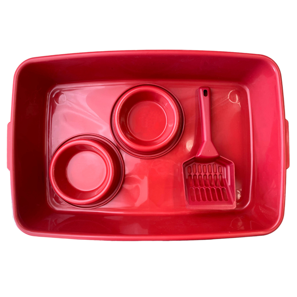 Kit acessórios para gatos + areia granulada 4kg