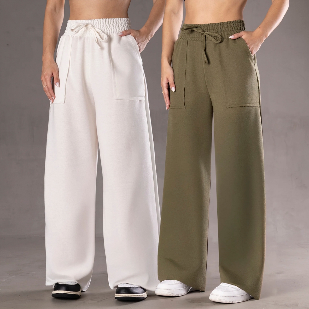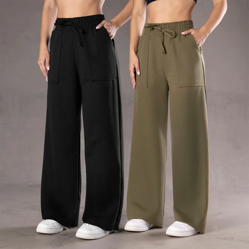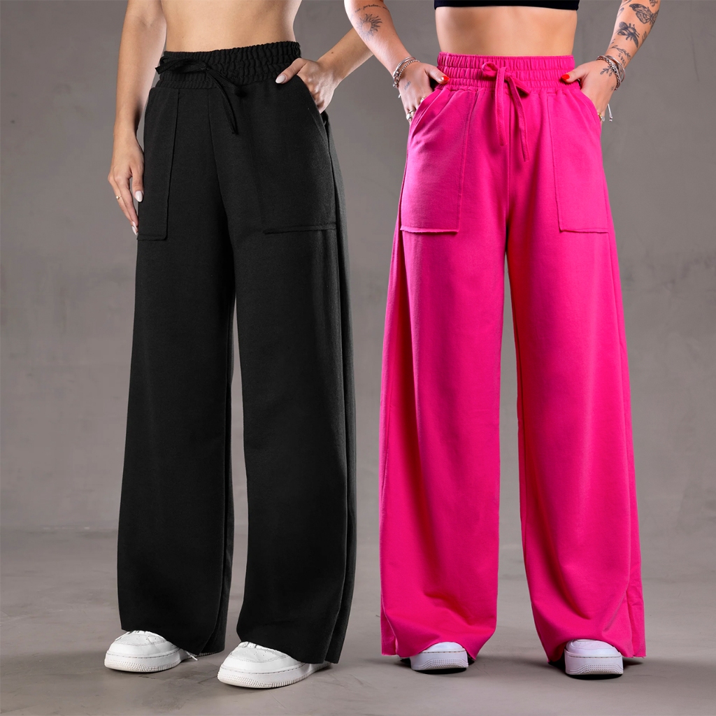 Kit 2 Calças Pantalona Feminina Cintura Alta Com Bolso elegante casual do P ao G1