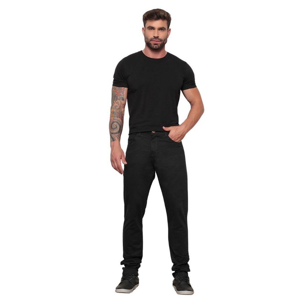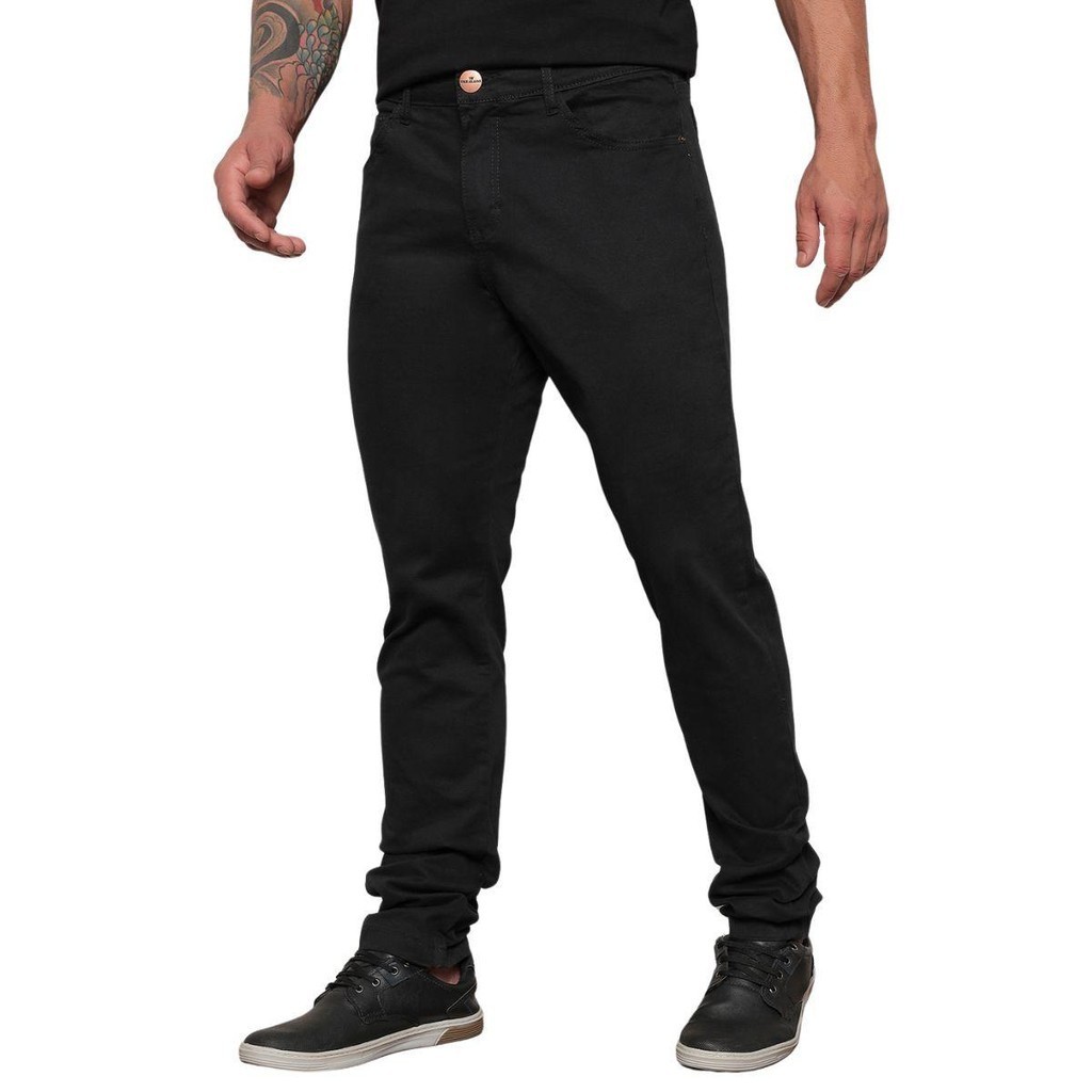 Calça Jeans Preta Masculina Alfaitaria Sarja Com Lycra Elastano Casual