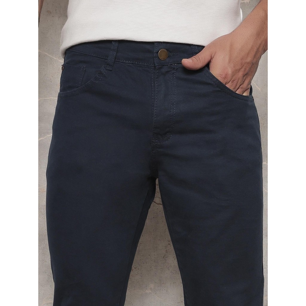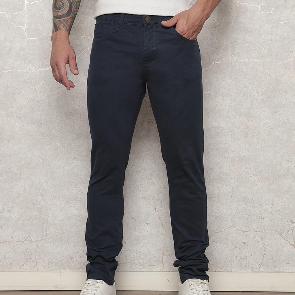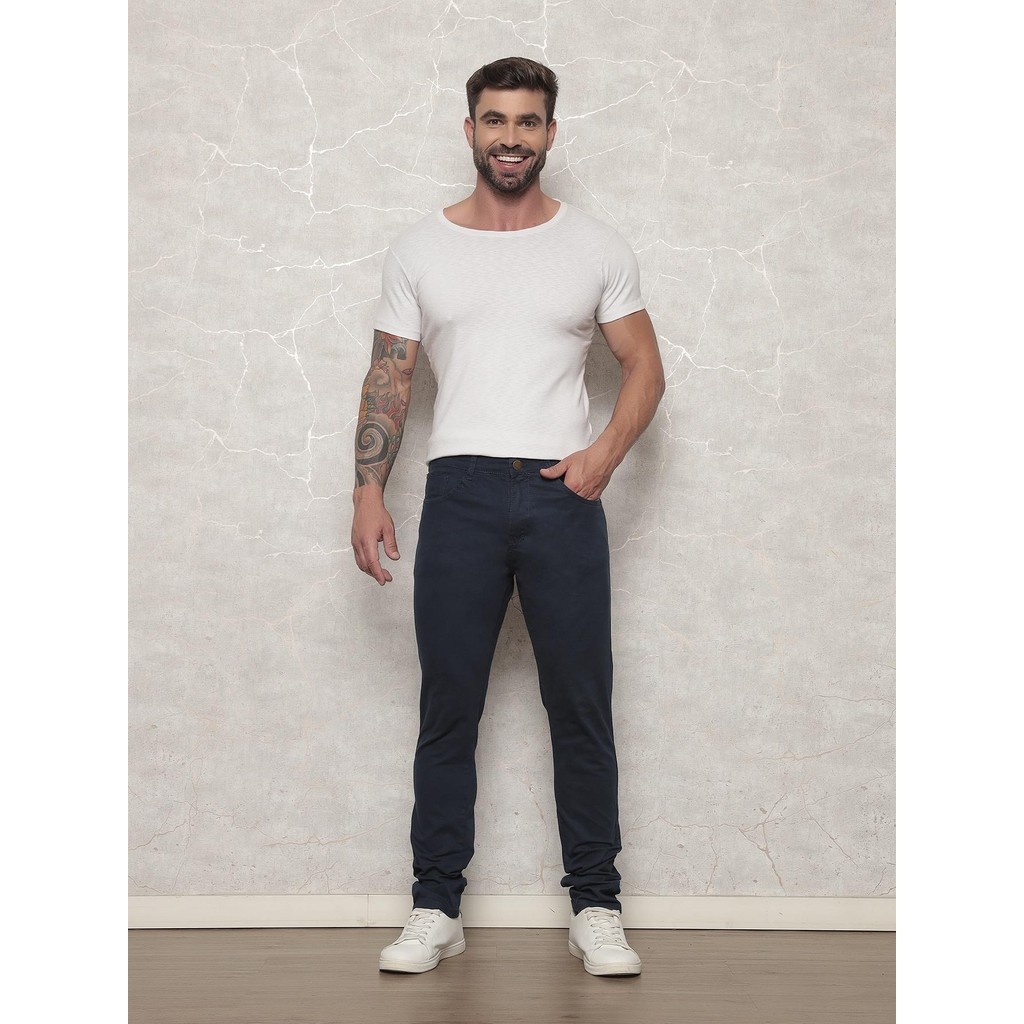 Calça Jeans Masculina Sarja Com Lycra Casual Azul Marinho
