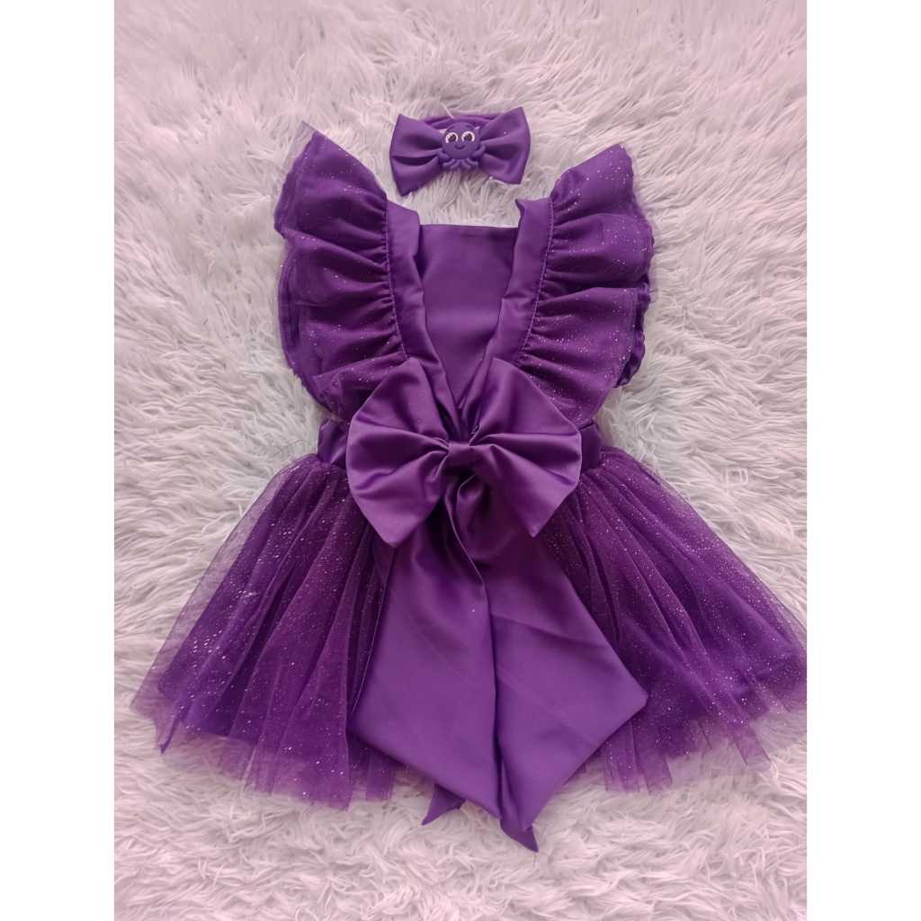 Romper Bolofofos GLITTER Roxo Luxo Menina Bebê Aniversário