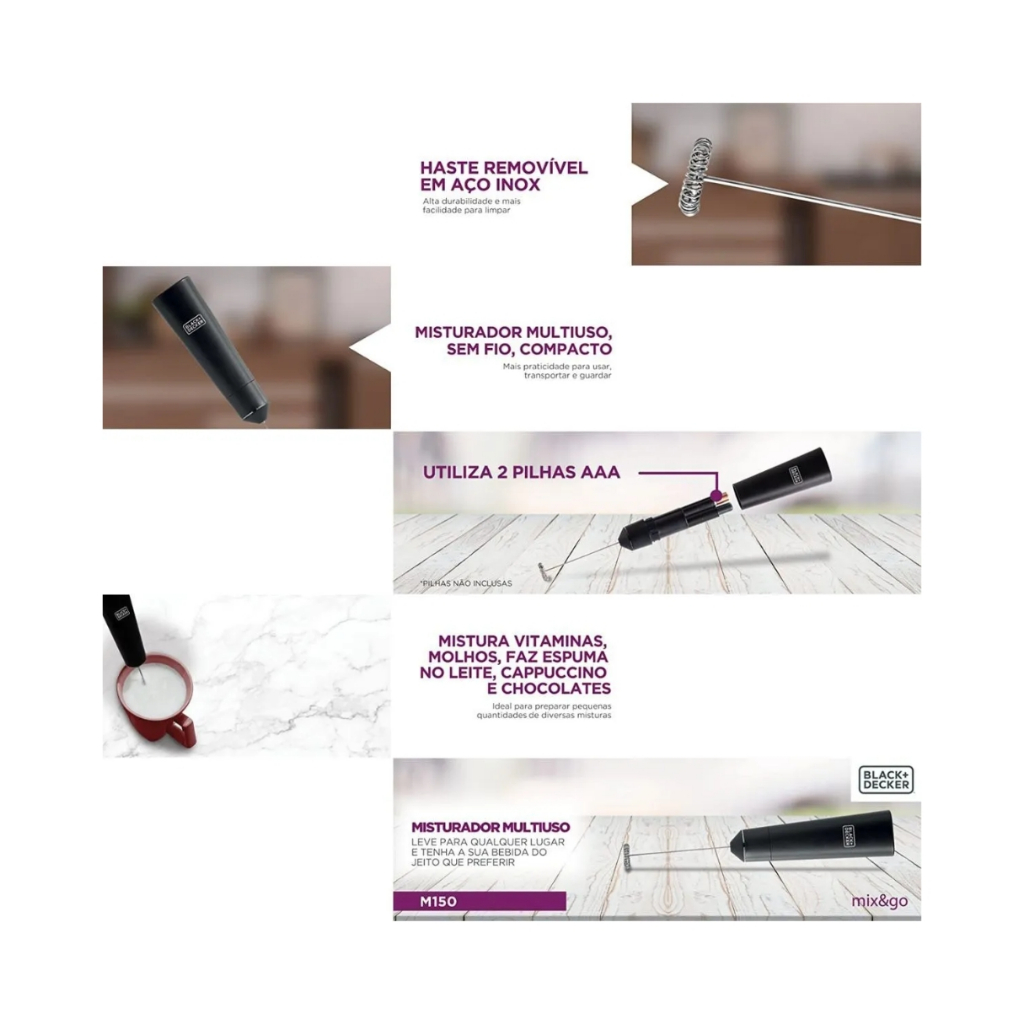 Mixer Portátil Misturador Multiuso Modelo M150 Black Decker