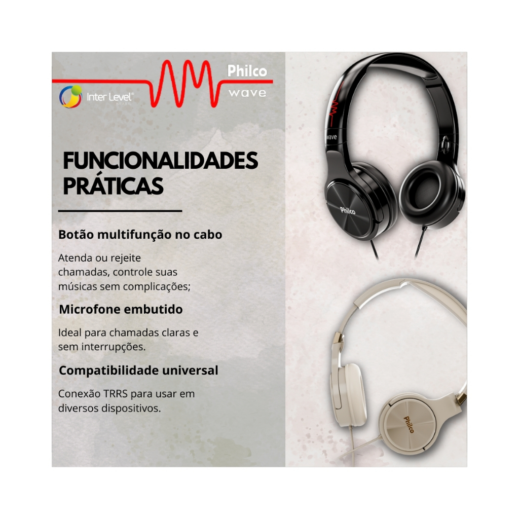Fone de Ouvido Over Ear PFO02 Wave Flat Philco