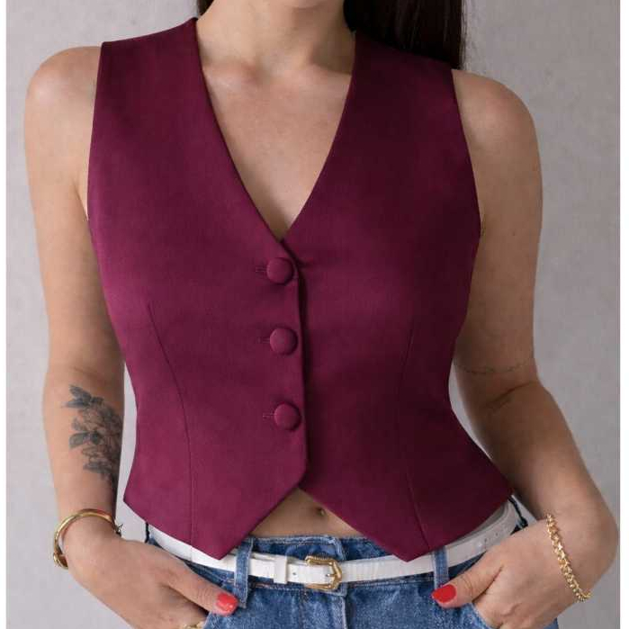 Colete Feminino Alfaiataria Botão Encapado