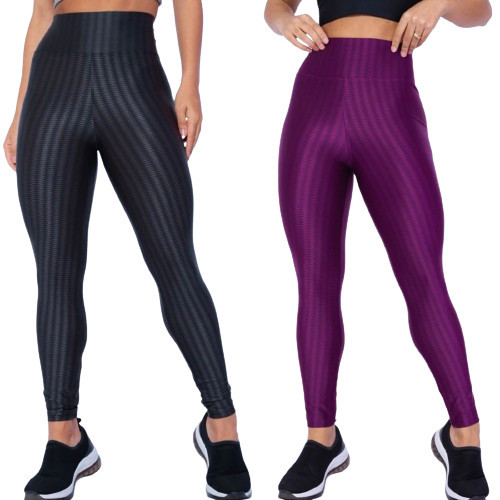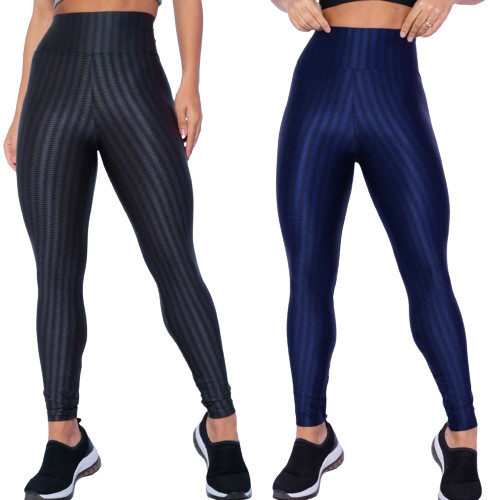 Kit 2 Calça Legging 3D Zig Zag Feminina Academia Treino Corrida Cintura Alta