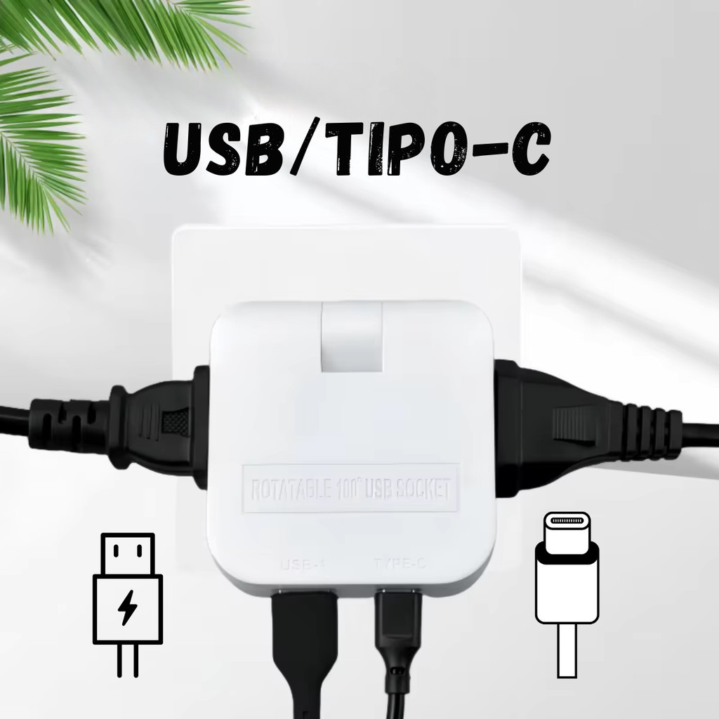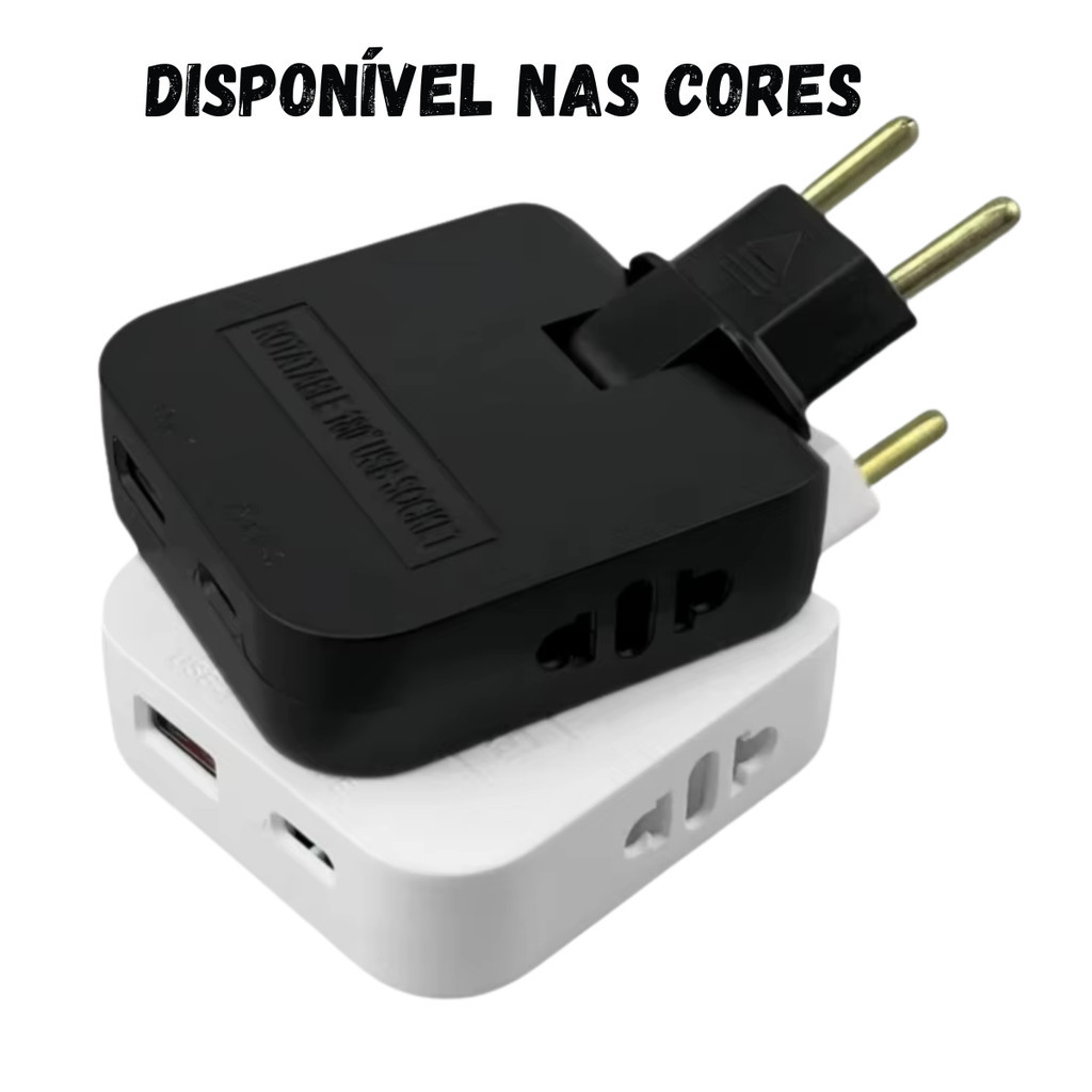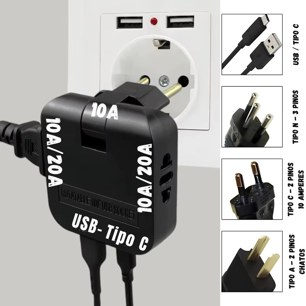 Adaptador Tomada 16A Benjamin Dobrável Articulado USB e Tipo C