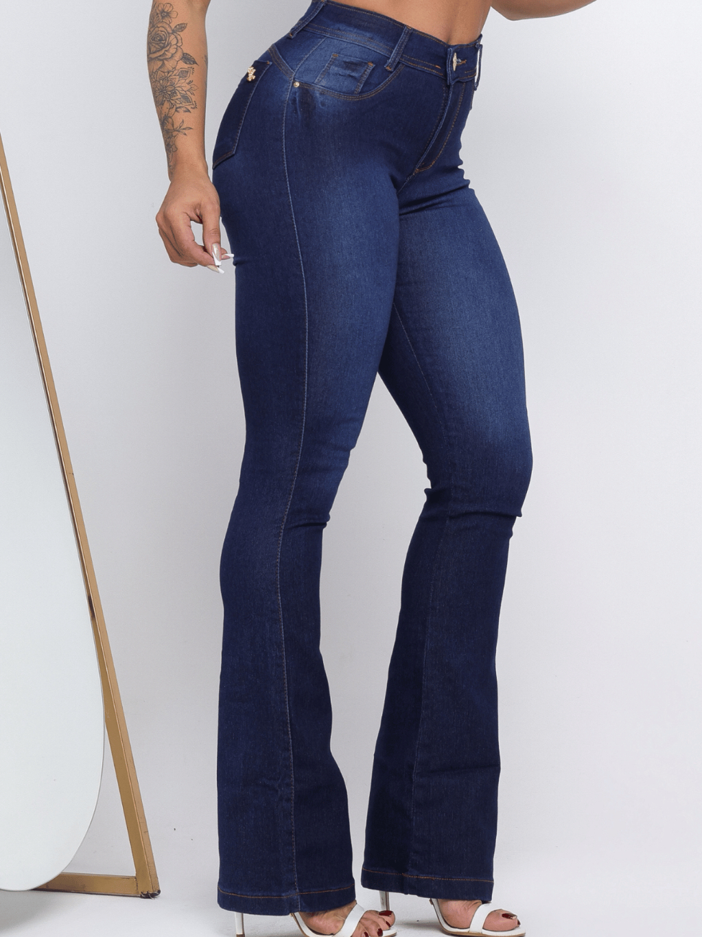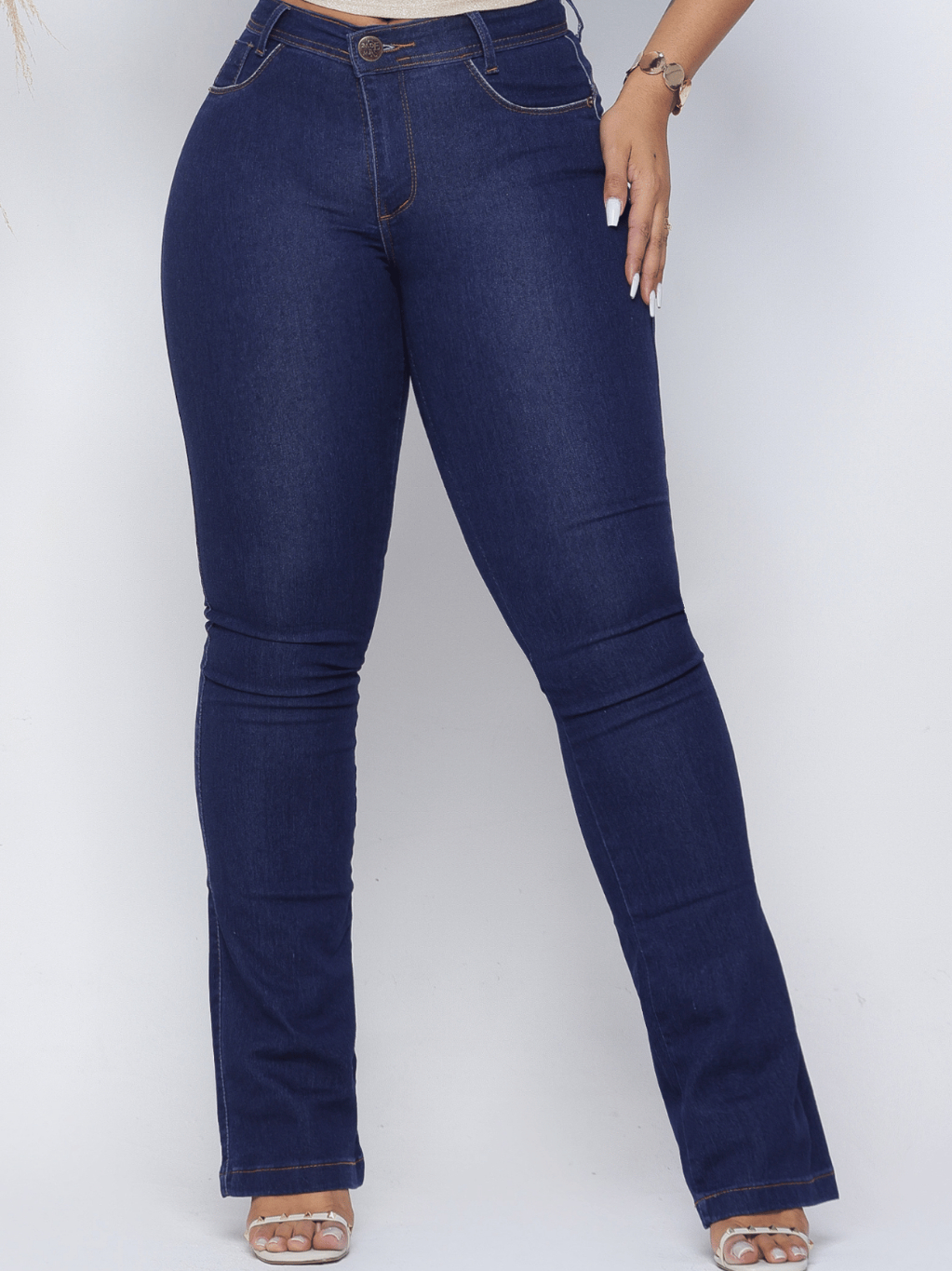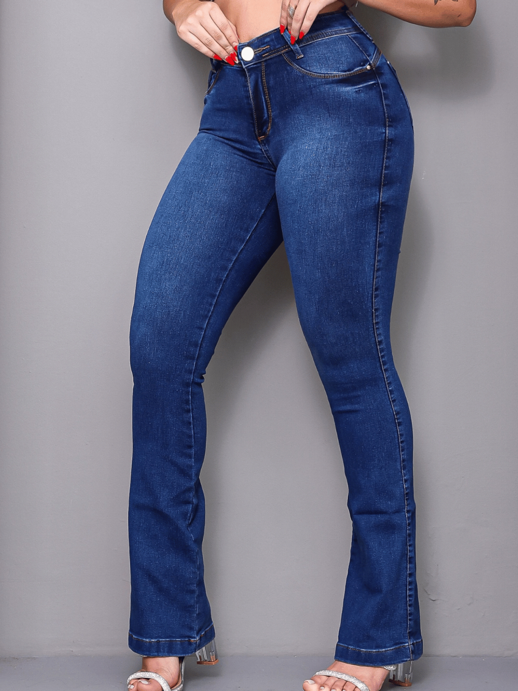 Calças Jeans Flare Feminina Cintura Alta Boca Sino com Lycra Wide Leg Efeito Empina Bumbum Premium