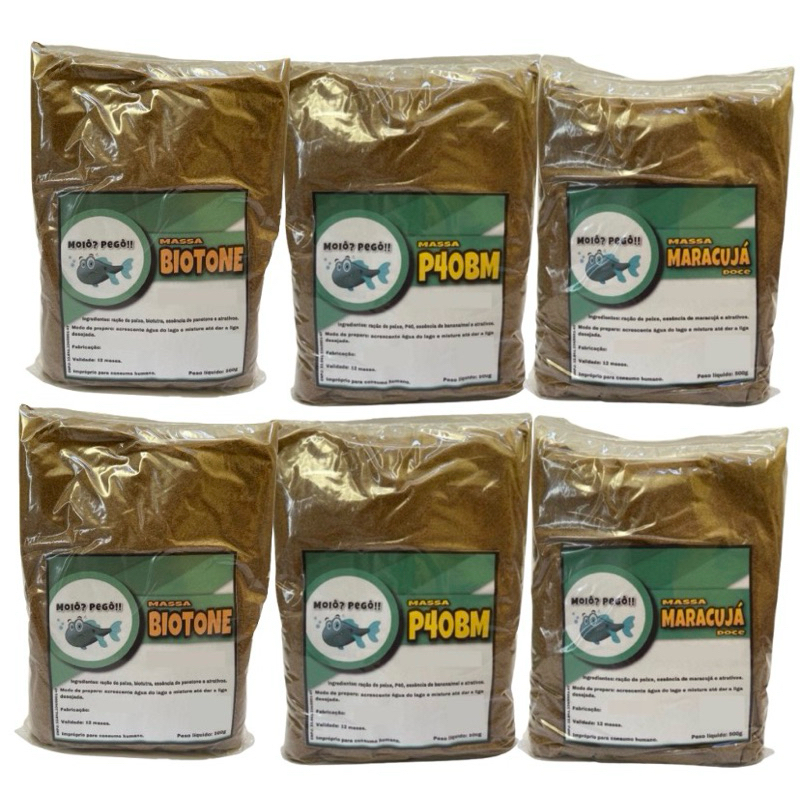 6 Massas Moiô Pegô para Pesca – Panetone, Maracujá, Banana com Mel. Kit massa para pesca Tilápia, Tambaqui, Pacu, Carpas