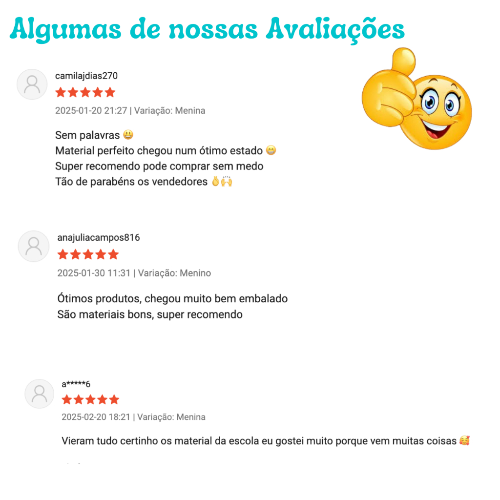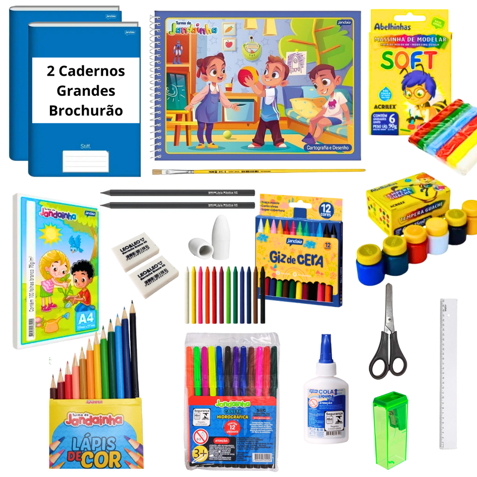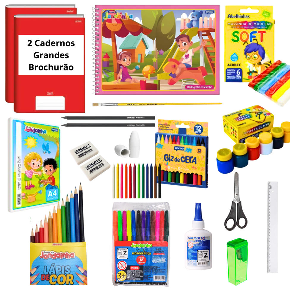 Kit Material Escolar Completo Fundamental Infantil e Pré Caderno Brochura Grande