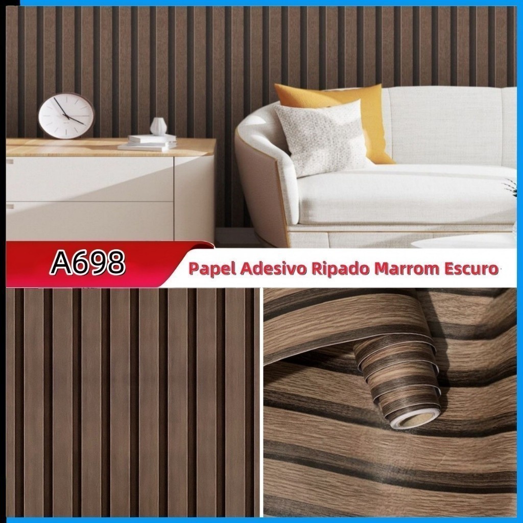 Papel de Parede Autoadesivo Madeira 10 Metros 3D Sala/Quarto 10m x 45cm