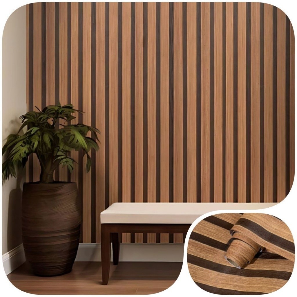 Papel de Parede 3D Adesivo Autocolante Decorativo 5 Metros Para Sala Ripado Amadeirado Madeira Escuro Para Autoadesivo