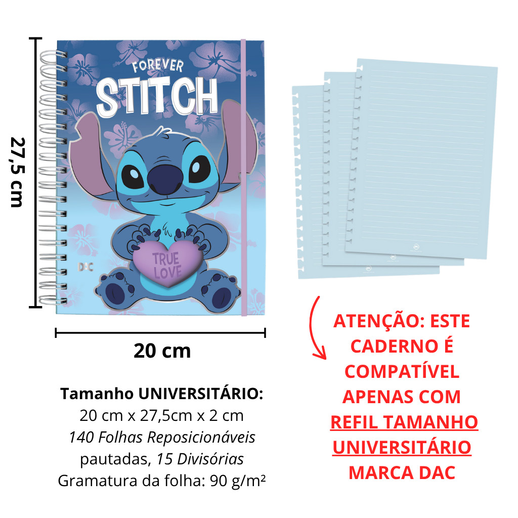Caderno Smart Universitário 15 Divisórias Stitch 140 fls - DAC